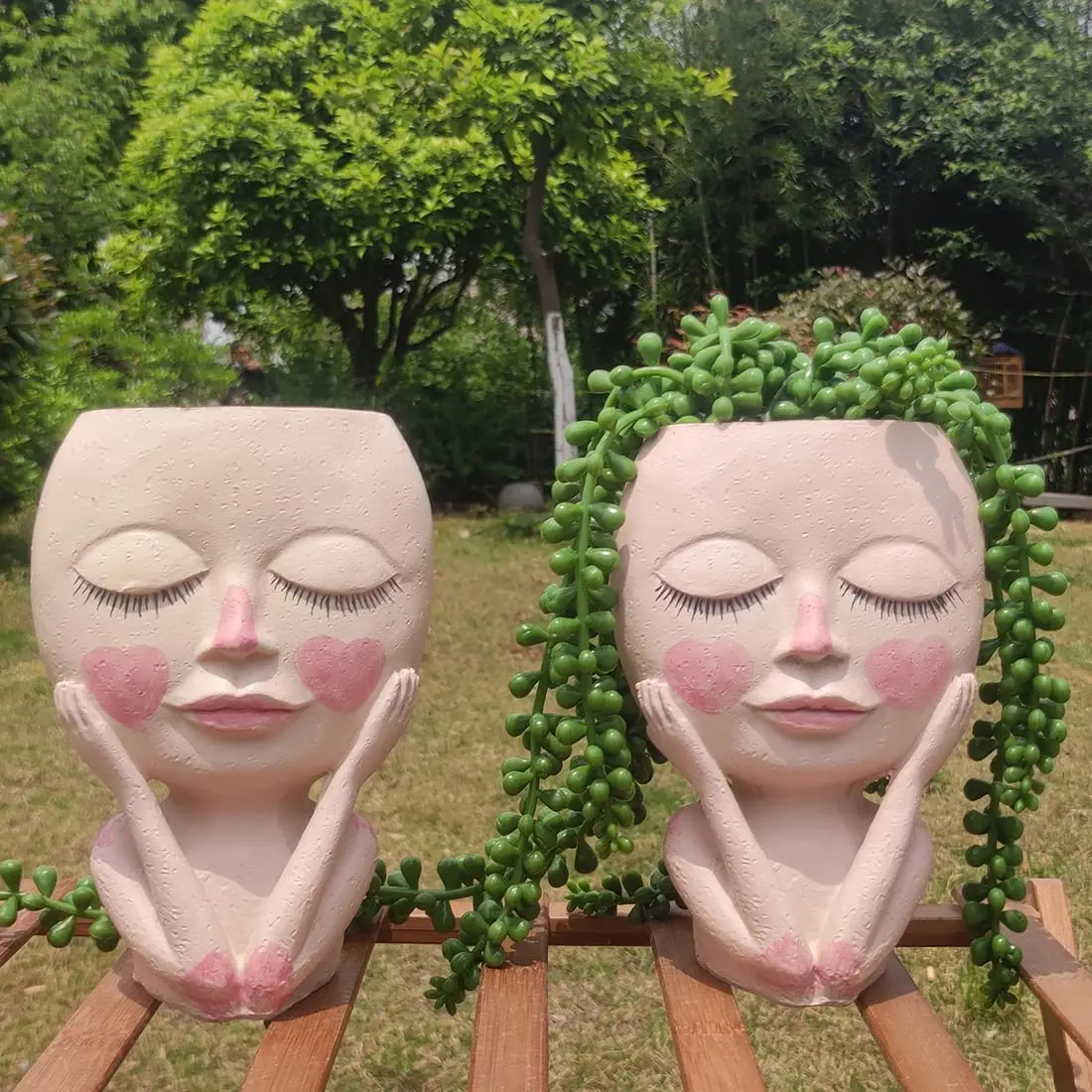 Красивые креативные горшки в форме груди делают растения похожими на женские волосы.