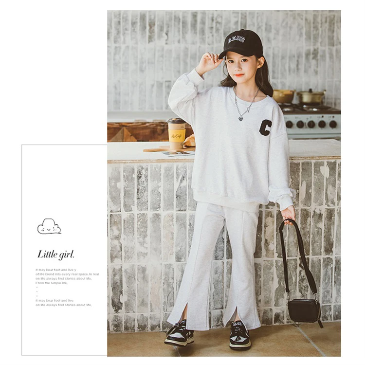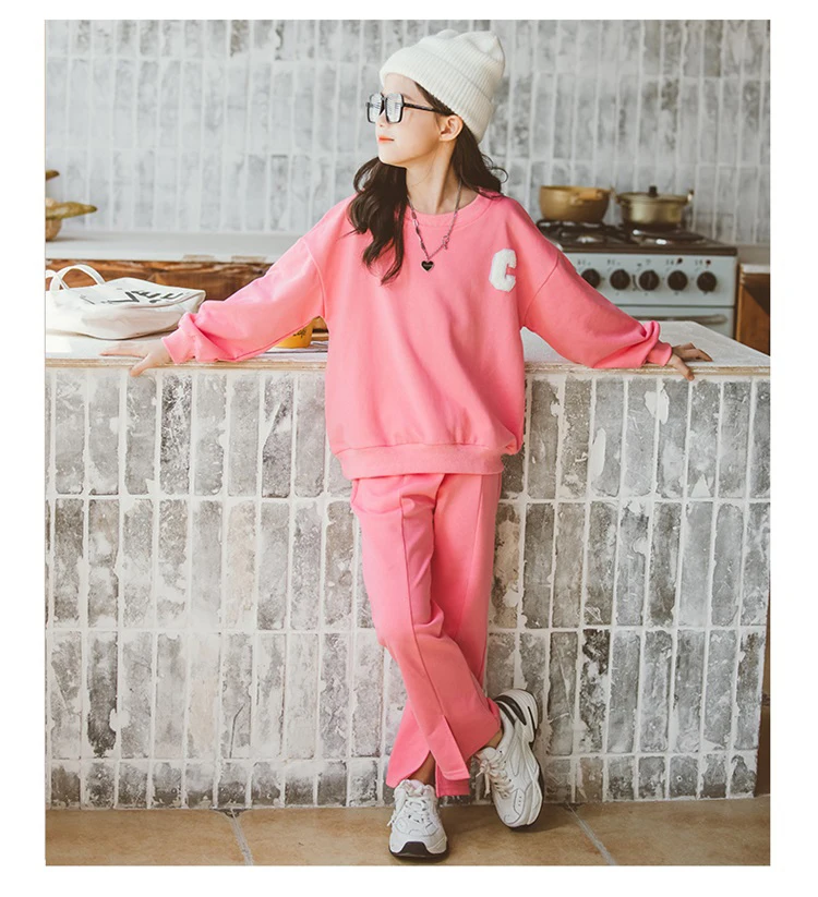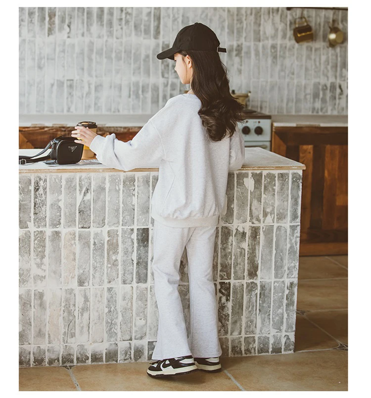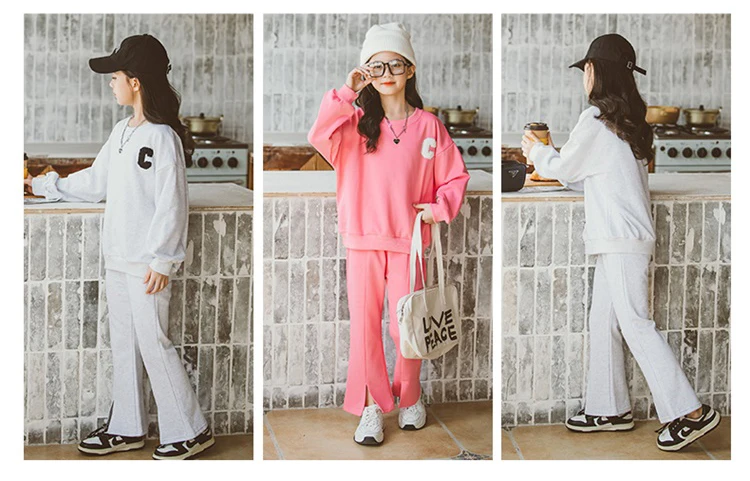 Новинка 2022 года, весенне-осенний спортивный костюм со штанами для девочек роскошный дизайн, расклешенные штаны для девочек дешевый зимний теплый свитер с длинными рукавами хлопковые брюки