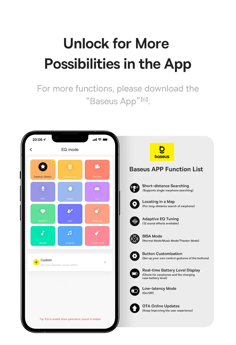 Технология Baseus Immersive Spatial Acoustics Technology (BISA) предлагает более широкое звуковое поле с чистым качеством звука, создавая совершенно новый захватывающий стереозвук для пользователей. Музыкальный режим и театральный режим