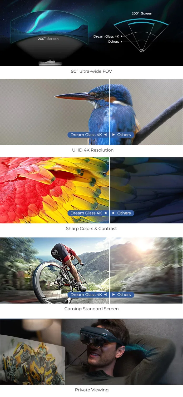 Dream Glass 4K’s specifications are top of the AR industry, with a price at a fraction of the others.