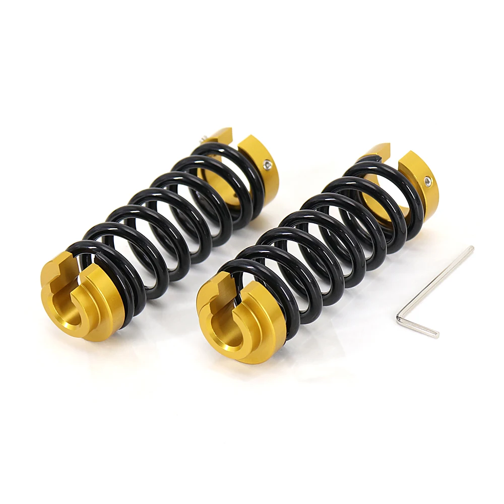 · Регулировка предварительной нагрузки пружиной путем нарезания цилиндрических амортизаторов, пользователь может повернуть преднагрузку, чтобы точно настроить пружину и затянуть предоставленный болт, чтобы зафиксировать кольцо в нужное место.