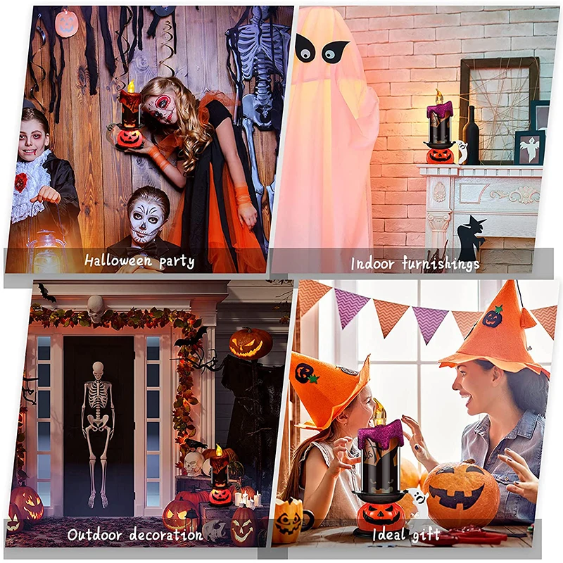 -Светильник для свечей на Хэллоуин --- с сочетанием размеров и форм, вдохновленных черепами тыквы, этот маленький домашний декор обязательно станет отличным фокусным расстоянием в вашем доме, добавьте светильник и сезонные цвета в любую комнату вашего дома.
