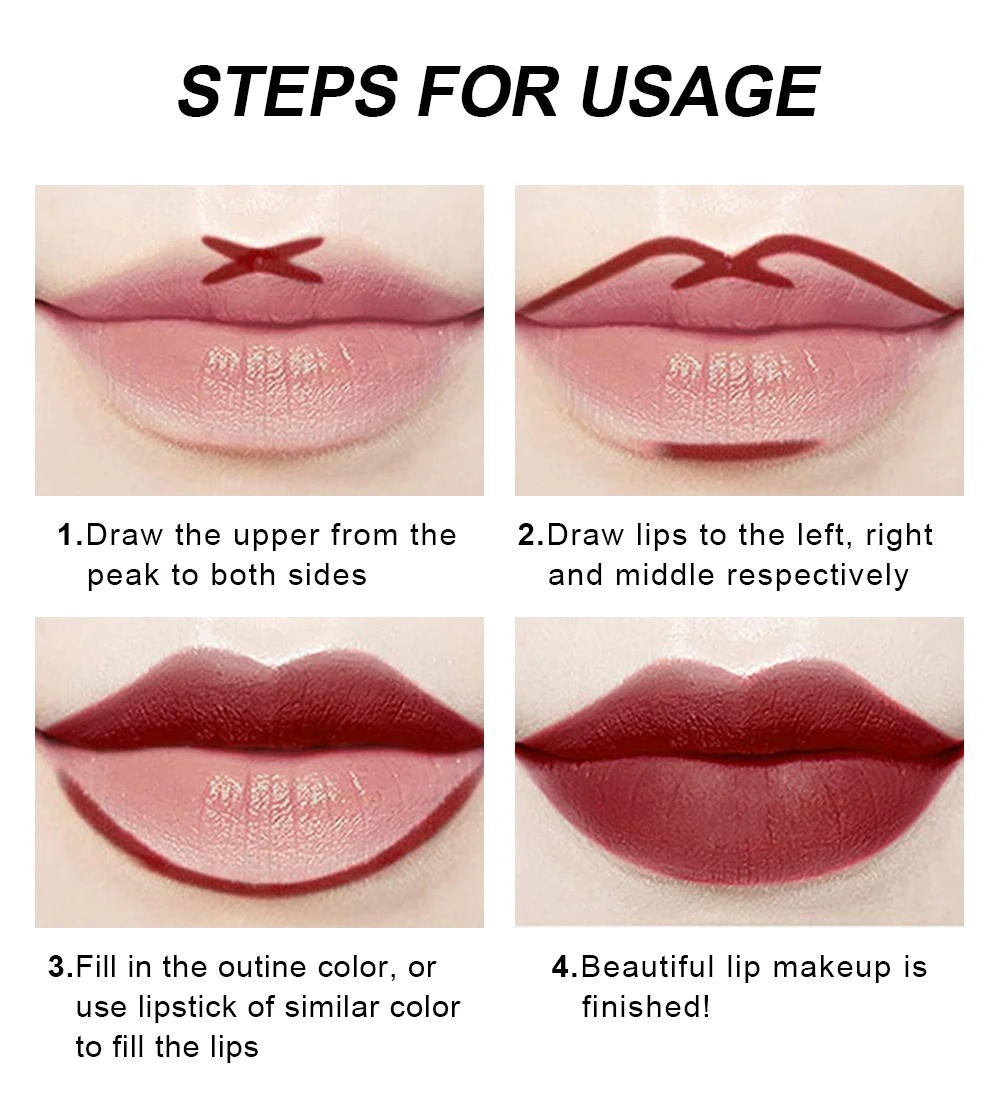 Один штрих, чтобы описать идеальную форму губ, быстрое нанесение макияжа, очень дружелюбный для начинающих
