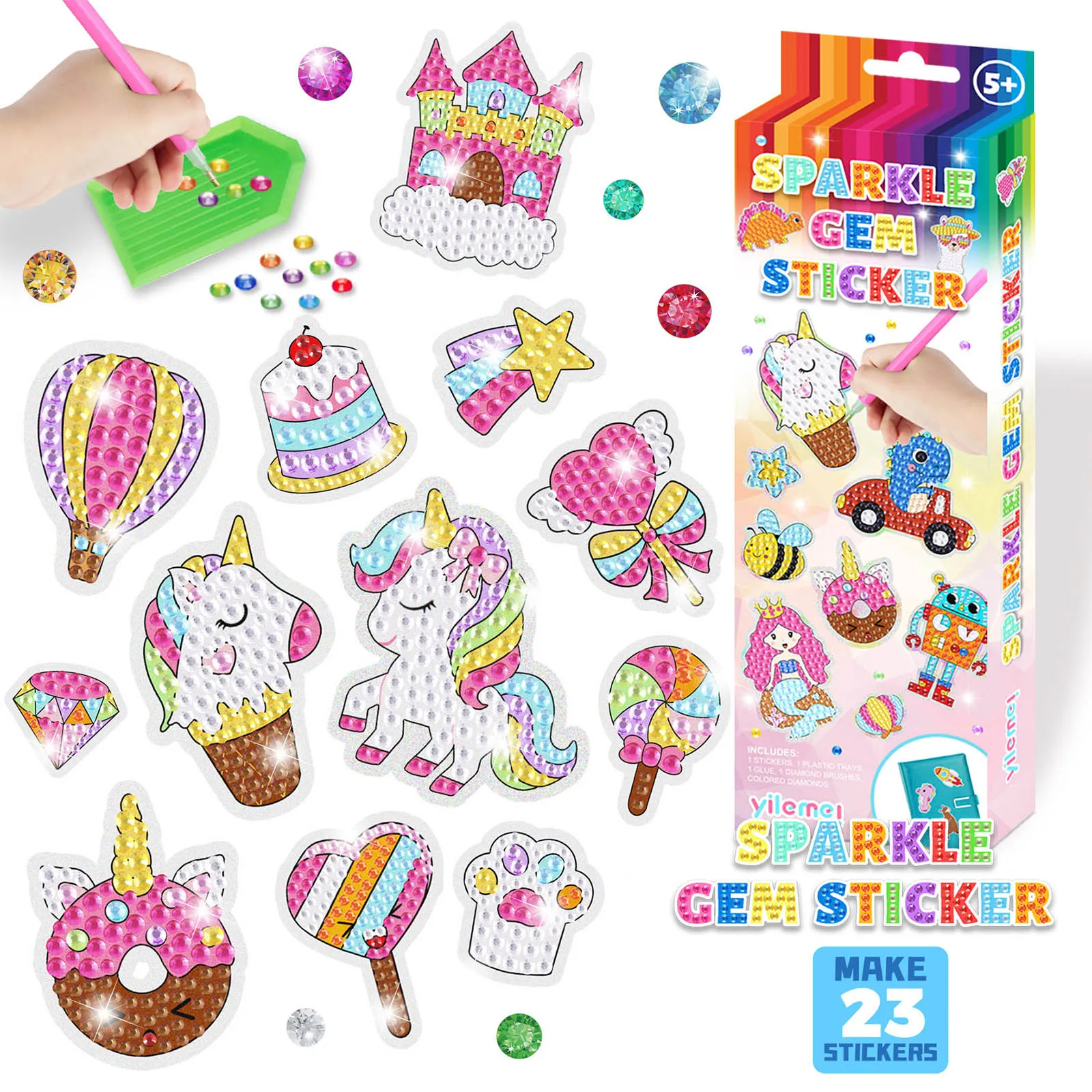 Набор алмазной картины может сделать 23 шт бриллиантовые наклейки. Дети могут использовать эти прекрасные наклейки, чтобы украсить их бутылки с водой, тетради, пенал и т. Д.