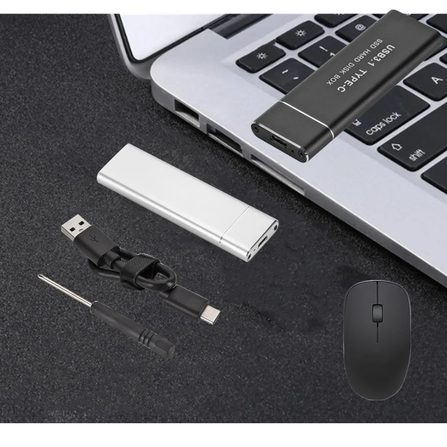 Посылка включает в себя 1 корпус жесткого диска 1 отвертка 1 кабель для передачи данных 1. M.2 NGFF к USB3.1 корпус жесткого диска чехол M2 SSD Type-C жесткий диск коробка. 2. Соответствует спецификации SATA 3,0 и соответствует спецификации USB3.0. 3. Безопасно подключает NGFF B Ключ SSD к компьютеру через порт USB. 4. Поддерживает 22*30 мм. 22*42 мм, 22*60 мм, 22*80 мм NGFF твердотельный жесткий диск (жесткий диск в комплект не входит). 5. Поддержка SSD NGFF на базе SATA. 6. Поддерживает B Ключ NGFF SSD. 7. Поддерживает скорость передачи данных до 6,0 ГБ/сек.. 8. Поддерживает функцию загрузки. 9. Поддержка plug & play и hot-swapping. 10. Прост в использовании, не требуется драйвер. Характеристики: Цвет: черный, серебристый (дополнительно) Материалы: алюминиевый сплав скорость передачи: 6 ГБ/сек. интерфейс передачи: USB3.1 Type-C Совместимость с операционной системой: windows 98/SE/ME/2000/XP/Vista/Win7/win8/win10/Mac OS 8,6 или последняя версия Размер: прибл. 100*31*9 мм (прибл.) Примечание: В комплект входит только жесткий диск, жесткий диск SSD не входит в комплект. Возможна погрешность в 1–3 см, связанная с особенностями измерения вручную. Из-за различных дисплеев и различного светильник, изображение может не показать фактический цвет товара. Спасибо за понимание.