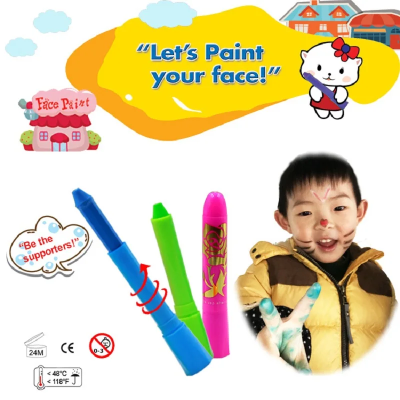Ручка для краски лица не токсична и не содержит консервантов. Краска для лица очень легко наносится на кожу.