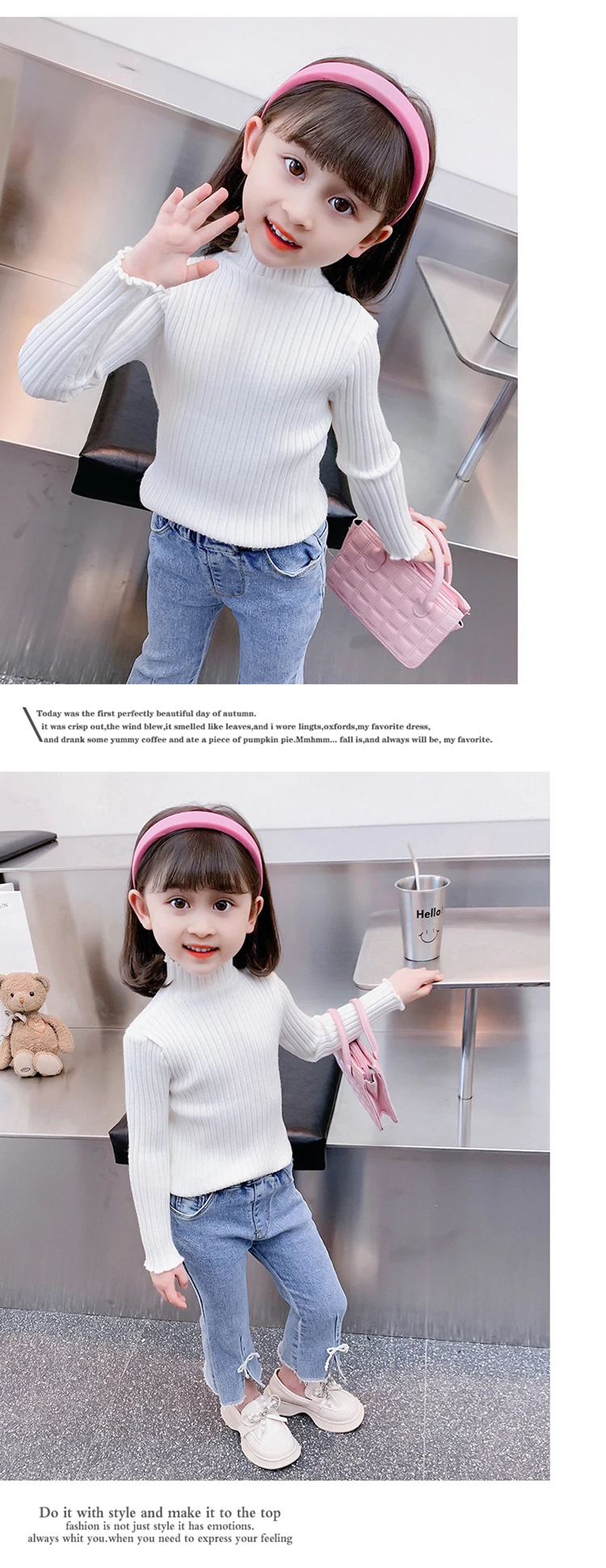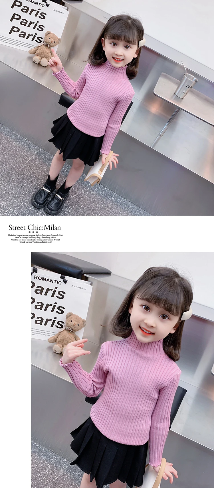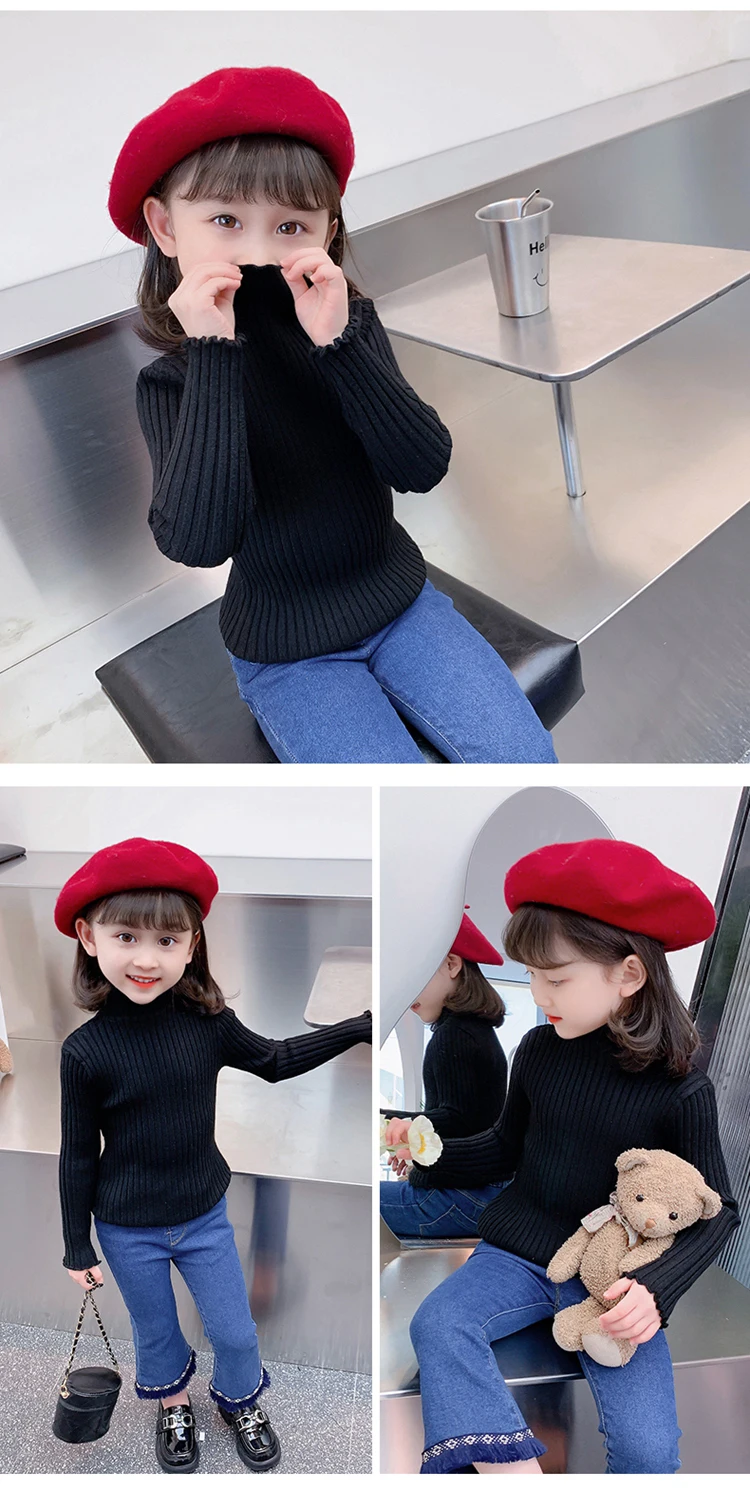 Осенне-зимний детский свитер в полоску с воротником под горло и длинными рукавами для девочек, Новый дешевый весенний свитер