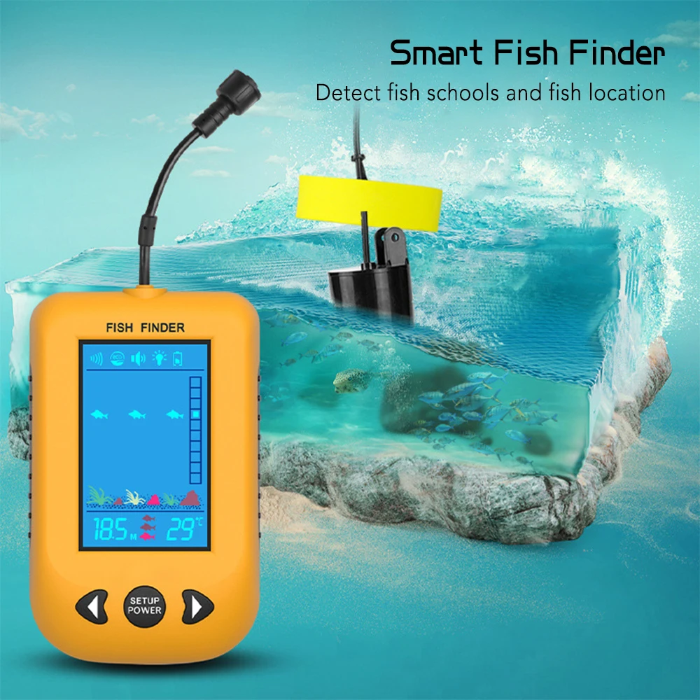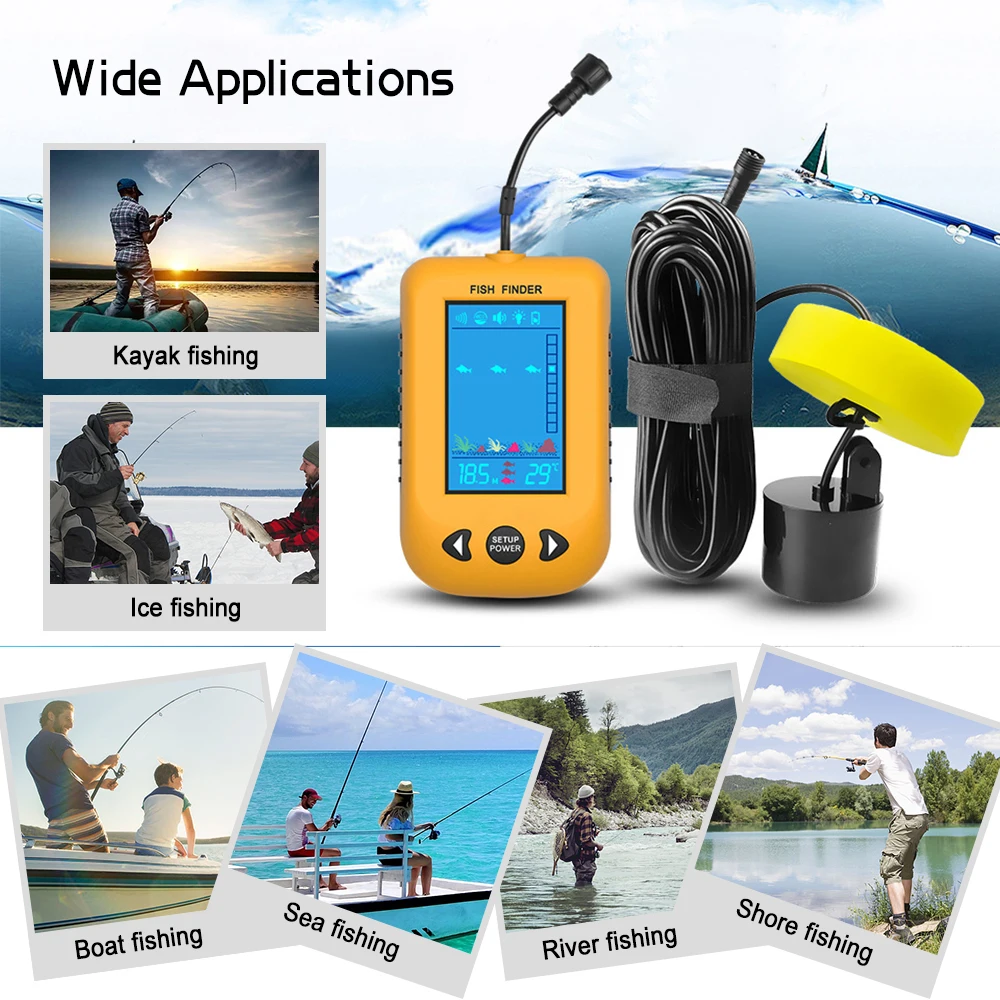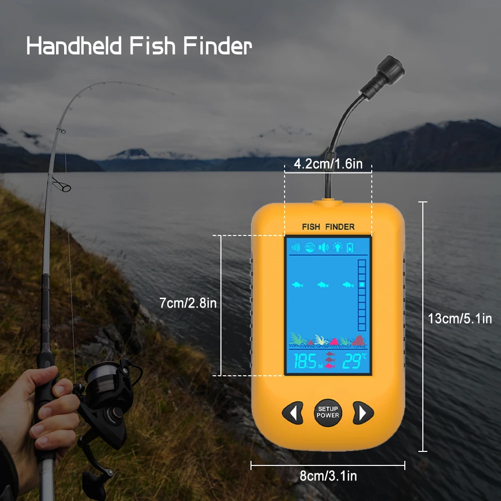 Этот рыболокатор поставляется с проводным преобразователем и беспроводным гидролокатором. Он предназначен для ловли рыбы. Он может обнаруживать местоположение рыбы и размер рыбы как в пресной, так и в соленой воде.