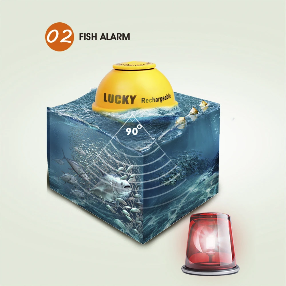 Беспроводной гидролокатор с привлекательной лампой для рыб, 60 м (200 футов) Беспроводной рабочий диапазон и 45 м (145 футов) глубина.