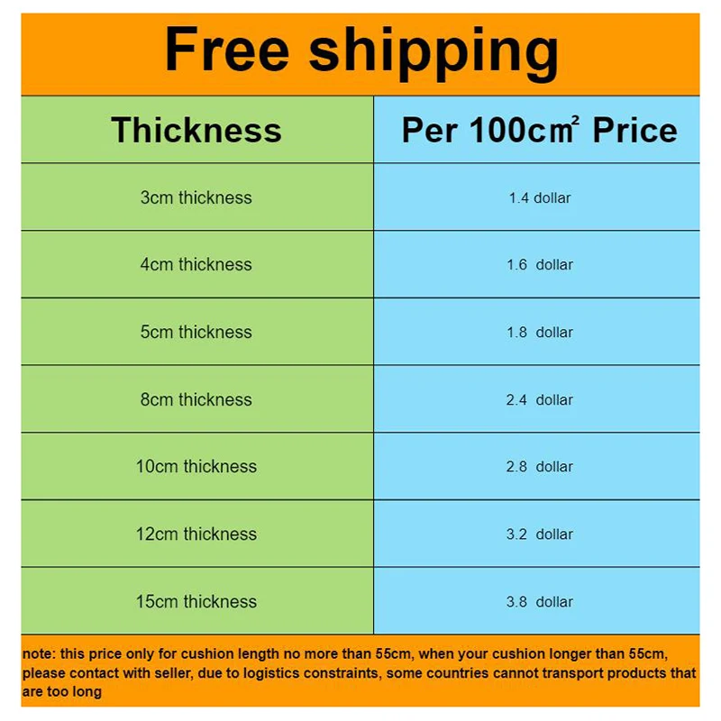 Например, 40x40 см, 4 см толщина подушки цена = 40x40 ÷ 100x1,6 = 25,6 доллар, бесплатная доставка