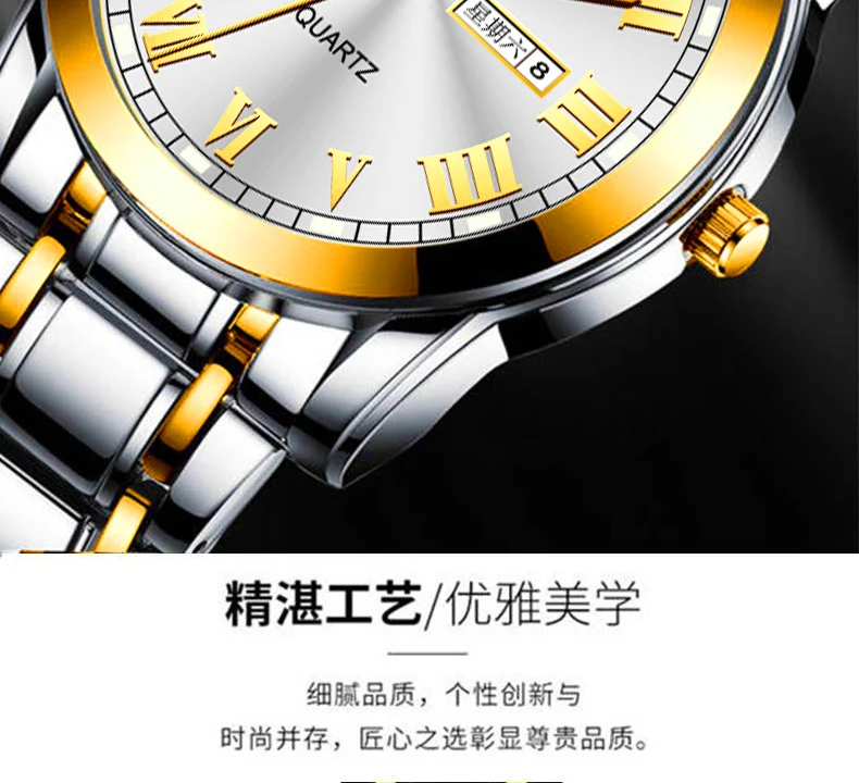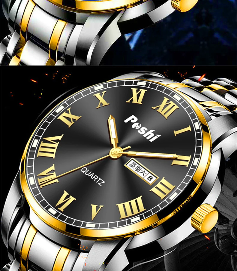 POSHI мужские часы из нержавеющей стали топ Quailty роскошные кнопки скрытая застежка водонепроницаемые светящиеся Дата Неделя спортивные наручные часы
