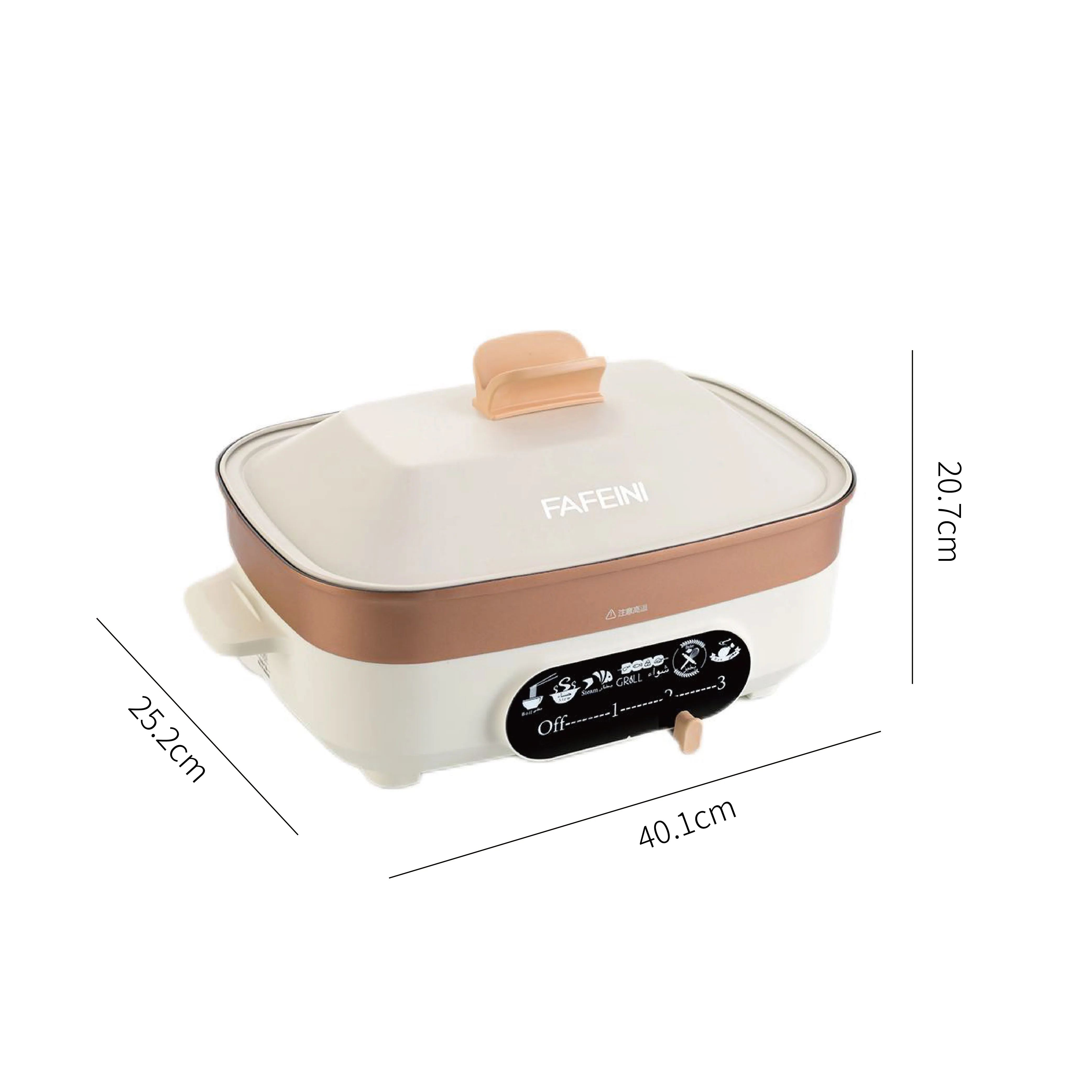 Номинальная мощность: 1500 Вт Электрический/горячий горшок Функция: жарить, жарить, варить, тушить, парить, жарить, горячий горшок характеристики: 31 см и выше подкладка: антипригарная подкладка Размер продукта: 340*240*85 мм Вес нетто: 2,7 кг Особенности: ● многоцелевого назначения в один горшок ● 5.5L Глубокий горшок, большая емкость, Подходит для 4-8 человек ● Использование пищевого контактного материала, более здоровый и надежный ● Алмазная текстурированная Нижняя конструкция, равномерно нагревается ● y-образная ручка, шпатель для хранения, чистая и гигиеническая ● основание для заземления, скрытый провод, легко хранить ● антипригарное покрытие, светильник с дымом и меньшим количеством масла, легче чистить 1500 Вт высокой мощности, более стабильное тепло и теплопроводность