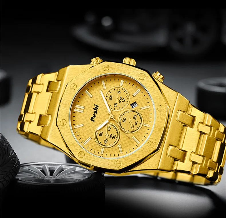 POSHI мужские часы люксовый бренд из нержавеющей стали спортивные часы мужские модные Календарь кварцевые мужские часы водонепроницаемые Relogio Masculino