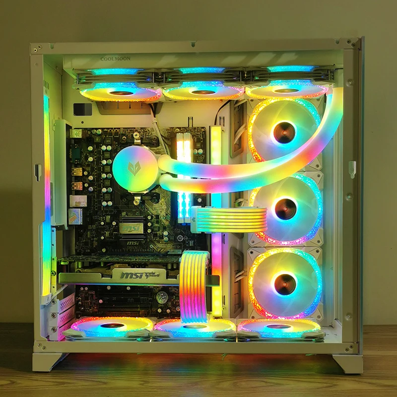4. Синхронизация ауры 5 В ARGB:Поддержка адресуемого интерфейса ARGB второго поколения материнских плат, таких как ASUS / MSI / Gigabyte / ASRock и т. Д., Управляйте освещением с помощью программного обеспечения и программно настраивайте 16,8 миллионов цветов.