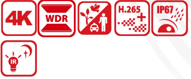Основное событиеОбнаружение движения (поддержка срабатывания сигнализации по указанным типам Мишеней (человек и транспортное средство), оповещение о взломе видео, исключением