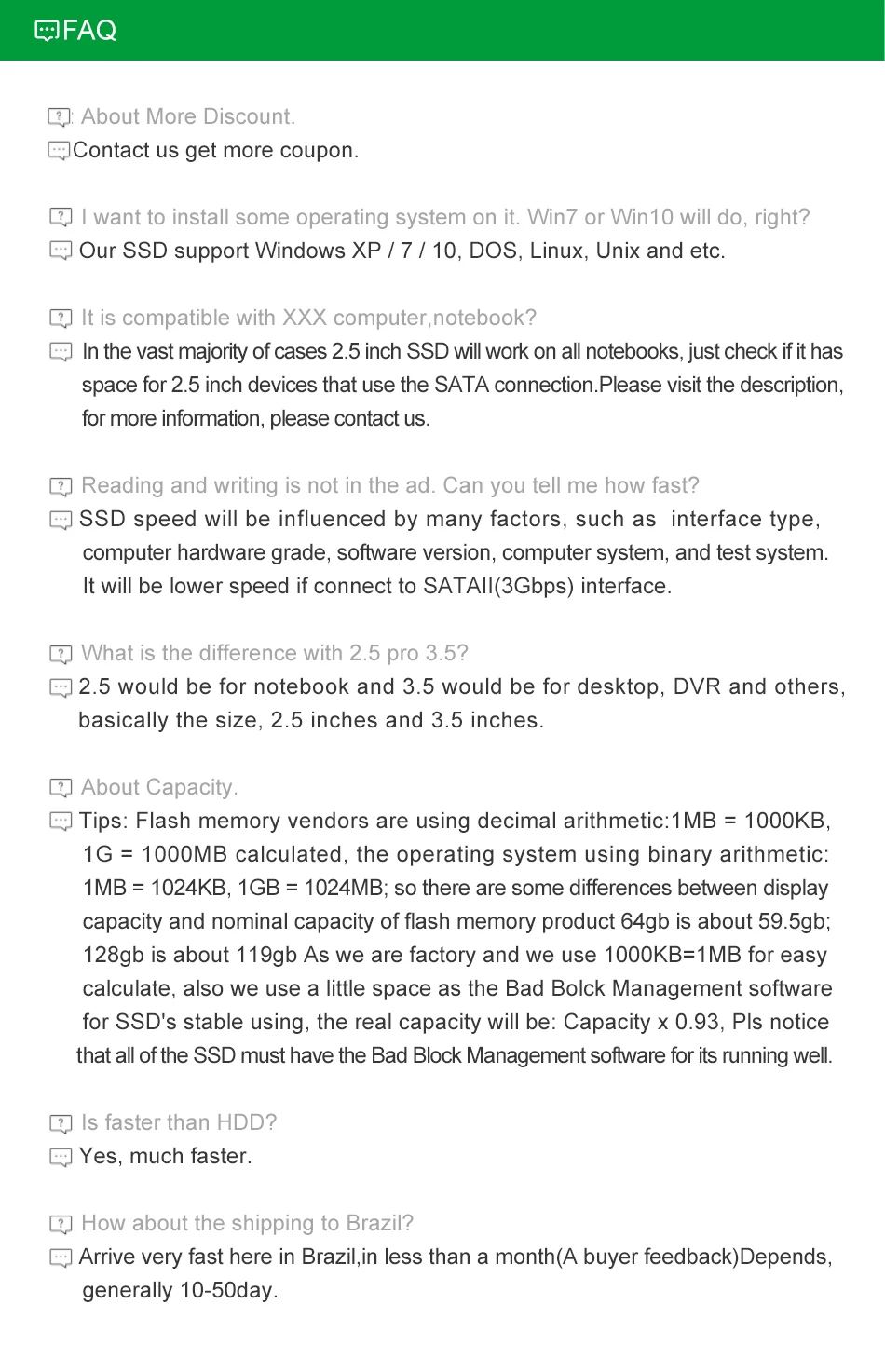 Note: For mining purpose,flash life endurance will be damaged faster than normal use. Warranty ONLY covers hard drives TBW life endurance.Warranty will be valid in one week after mining clients confirmed quality. The warranty will be invalid as bellow condition :