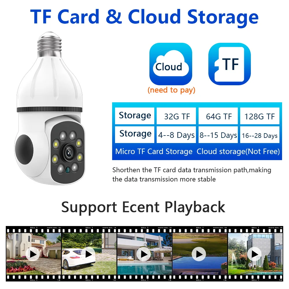 Камера поддерживает Локальное резервное копирование до 128 Гб TF карты, а также предоставляет Облачное хранилище (необходимо оплатить дополнительную плату)