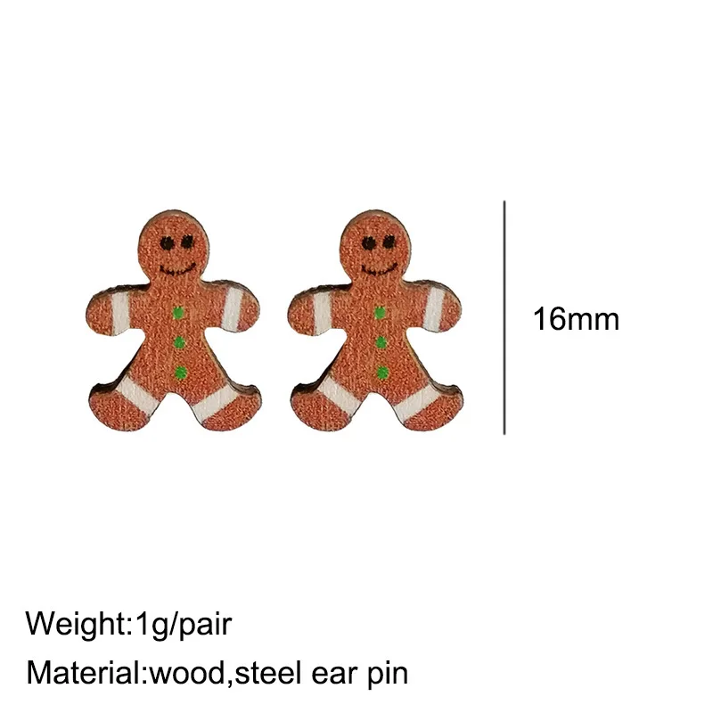 Laser Cut Wood Christmas Wood Studs Gingerbread Cookie Hot Cocoa Christmas Tree Earrings Holiday Winter Christmas Gift 2023 New