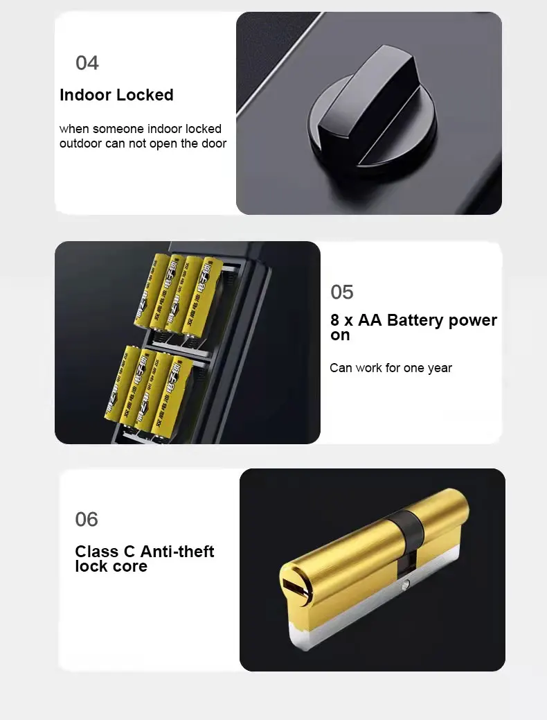 【5Способы разблокирования отпечатков пальцев, пароль, механический ключ, Карта Tuya Приложение (опционально)