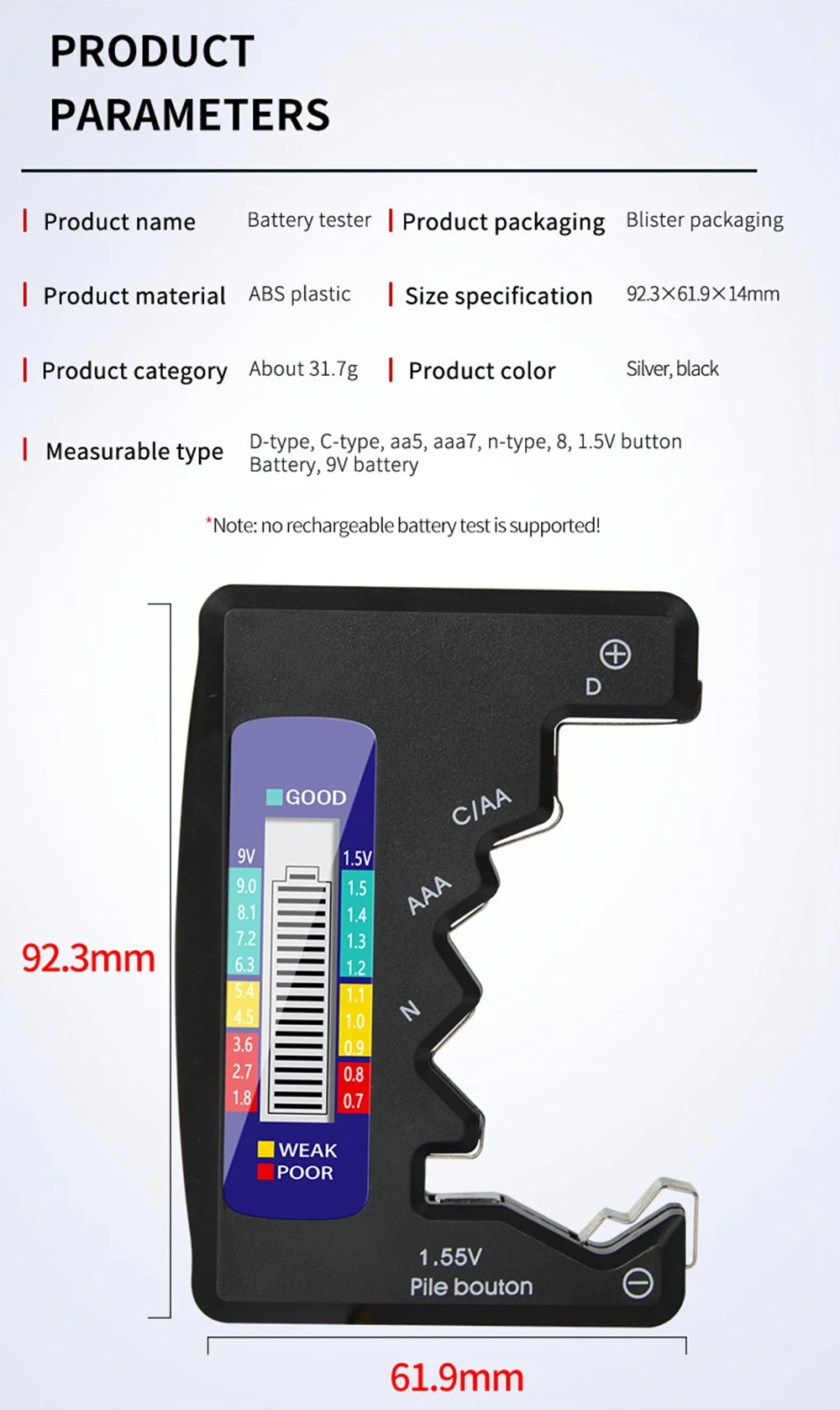5. Различные типы батарей могут быть измерены, это может решить проблему батареи дома.