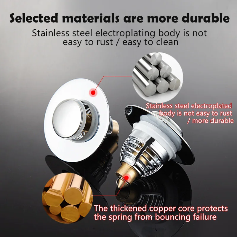Universal Stainless Steel Basin Pop-Up Bounce Core Basin Drain Filter Hair Catcher Sink Strainer Bathtub Stopper Bathroom Tool