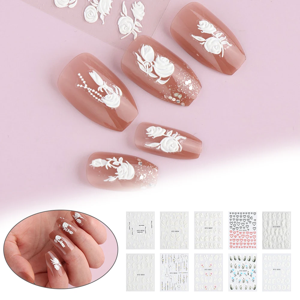 5D модные белые любовь сердце музыка звезда дизайн ногтей наклейки ультра тонкие самоклеющиеся наклейки слайдеры украшения для дизайна ногтей