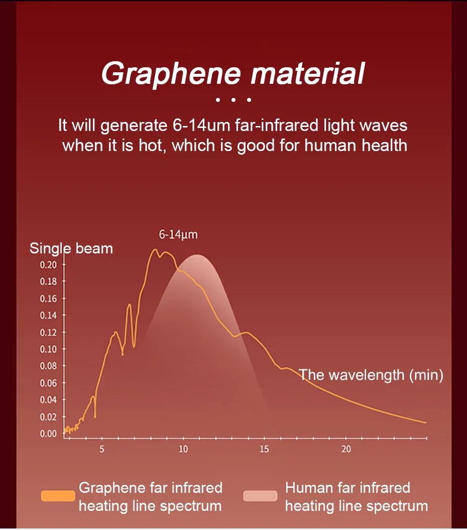 2. Когда Графен нагревается, он генерирует 6-14um Дальний инфракрасный светильник с частотой, аналогичной частоте клеток, что полезно для здоровья человека.