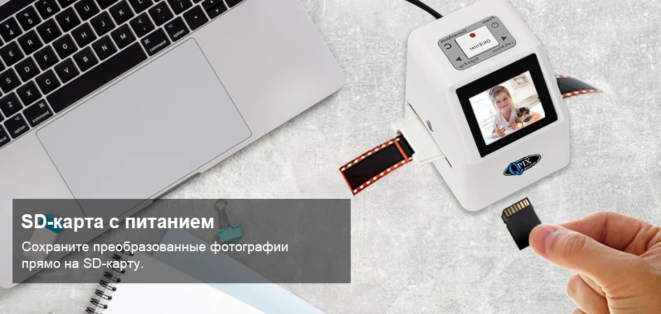 Оцифруйте свои воспоминанияИнструкции на экране помогут вам легко выбрать правильный адаптер для слайдов и пленок.Сканер слайдов пленки подходит для офиса и дома, портативный и миниатюрный размер сохранит вашу драгоценную фотографию вечности.