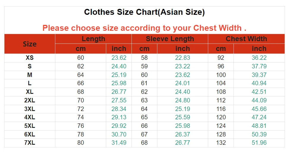 1: Азиатский размер. Поскольку привычки одевания у всех разные (некоторые люди любят свободные/облегающие), пожалуйста, пройдите через ширину груди для лучшего размера.