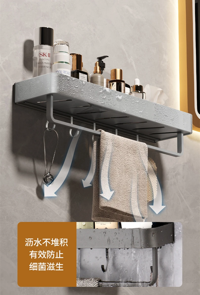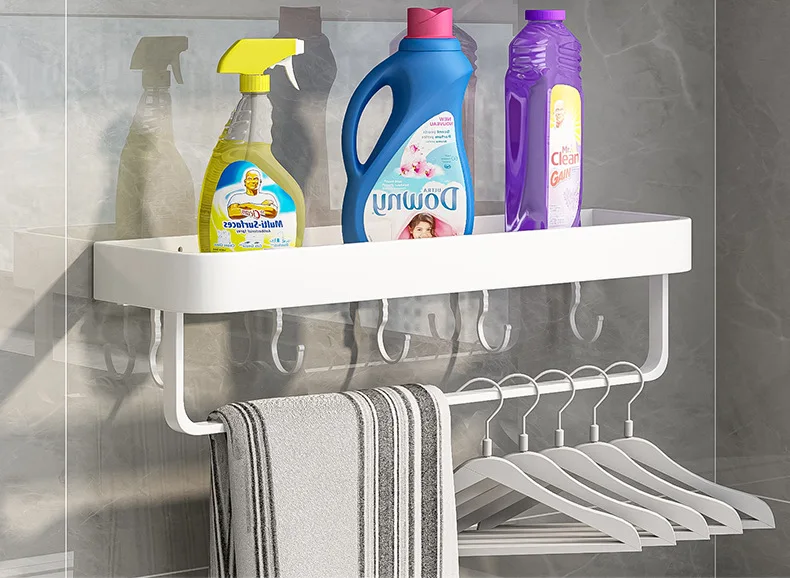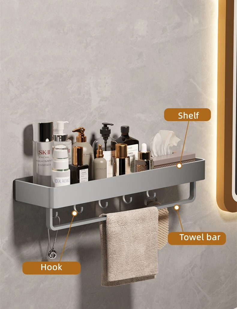 Белая/серая полка для хранения в ванной, кухонная полка для бутылки для специй, многофункциональная полка для шампуня, полотенце, крючок, аксессуар для душевой комнаты