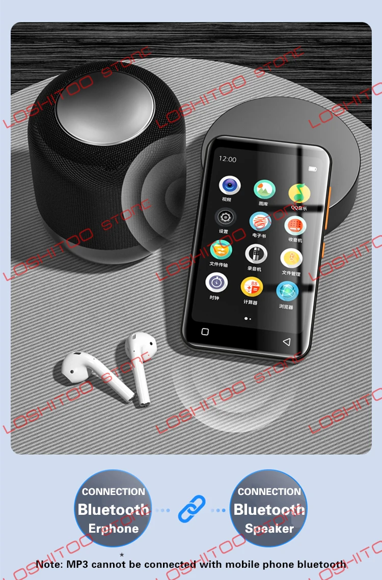 Этот музыкальный плеер оснащен полнофункциональным двухуровневым Bluetooth, который идеально совместим с bluetooth-наушниками, bluetooth-динамиками и автомобильным аудио. И это значительно уменьшает общие проблемы, связанные с невозможностью обнаружения устройства, невозможностью сопряжения и частым отключением. (Последняя версия была обновлена до версии Bluetooth 5,0)