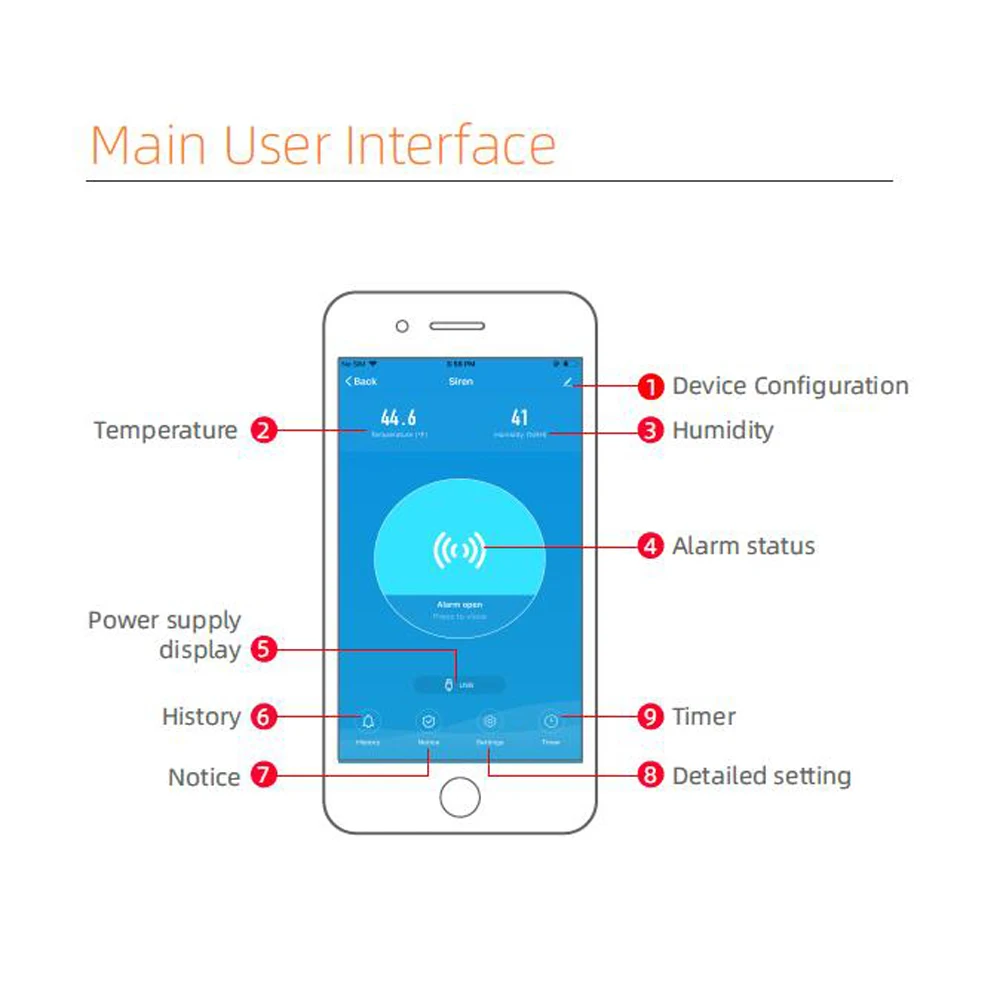 *Alarm Notifications: Smart phone will get instant notifications when siren alarm triggered and check the log on APP. Widely used in home, kitchen,office, etc.
