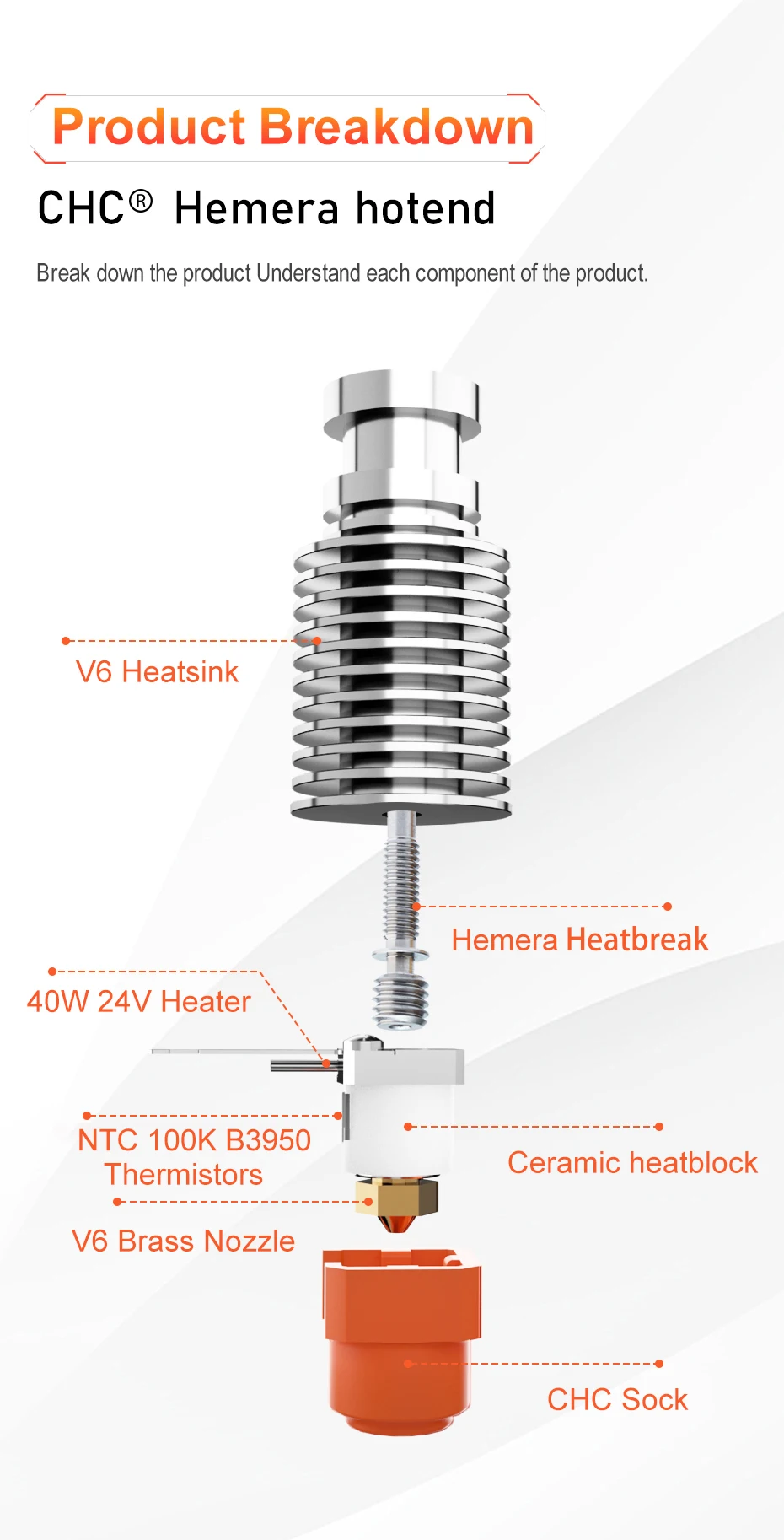 Совместим с любым излучателем V5/V6/CR10/HEMERA/MATRIX, до 300 ℃ Градусов Цельсия