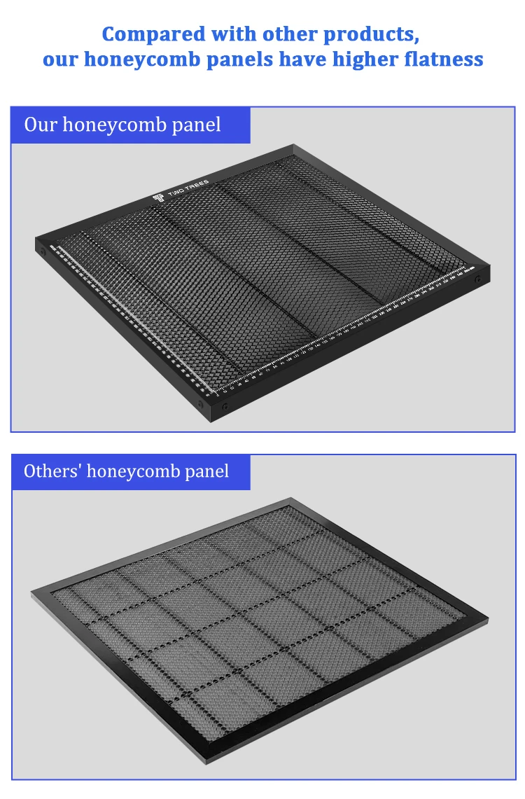 Observable Design: When the laser cuts through wood or acrylic, the metal plate at the bottom of the honeycomb will emit a bright light, which means that the cutting has penetrated. Easier to judge whether cutting through. You don’t need to calculate the number of cuts, just keep repeating cutting until the bottom glows, which means the material has been cut through.