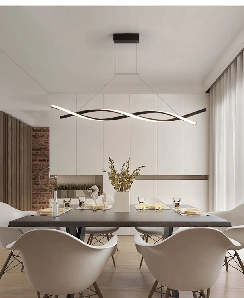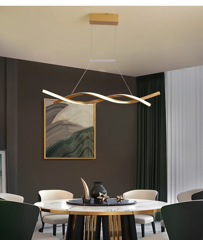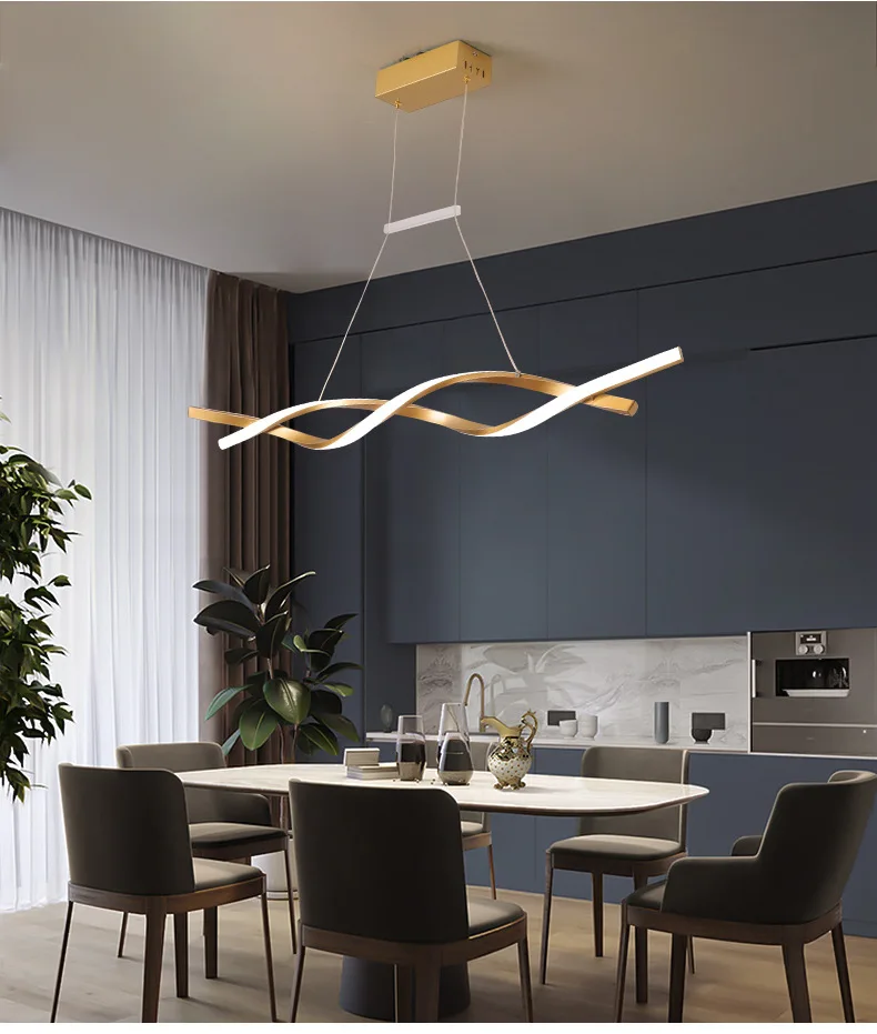 Nordic gold black led hanging lamp modern simple dining bar counter suspension luminaire coffee shop long strip pendant lights
