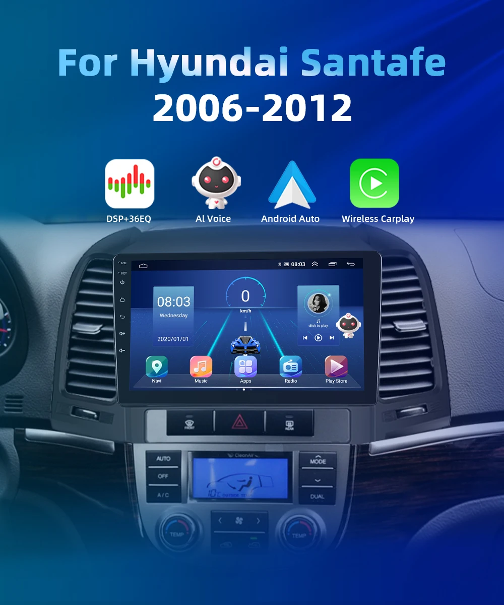 Podofo 8 ядер 2din автомобильное радио для Hyundai Santa Fe 2006-2012 Android Мультимедиа Видео плеер GPS навигация WIFI Carplay головное устройство