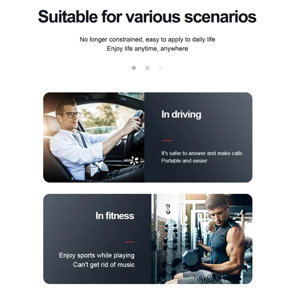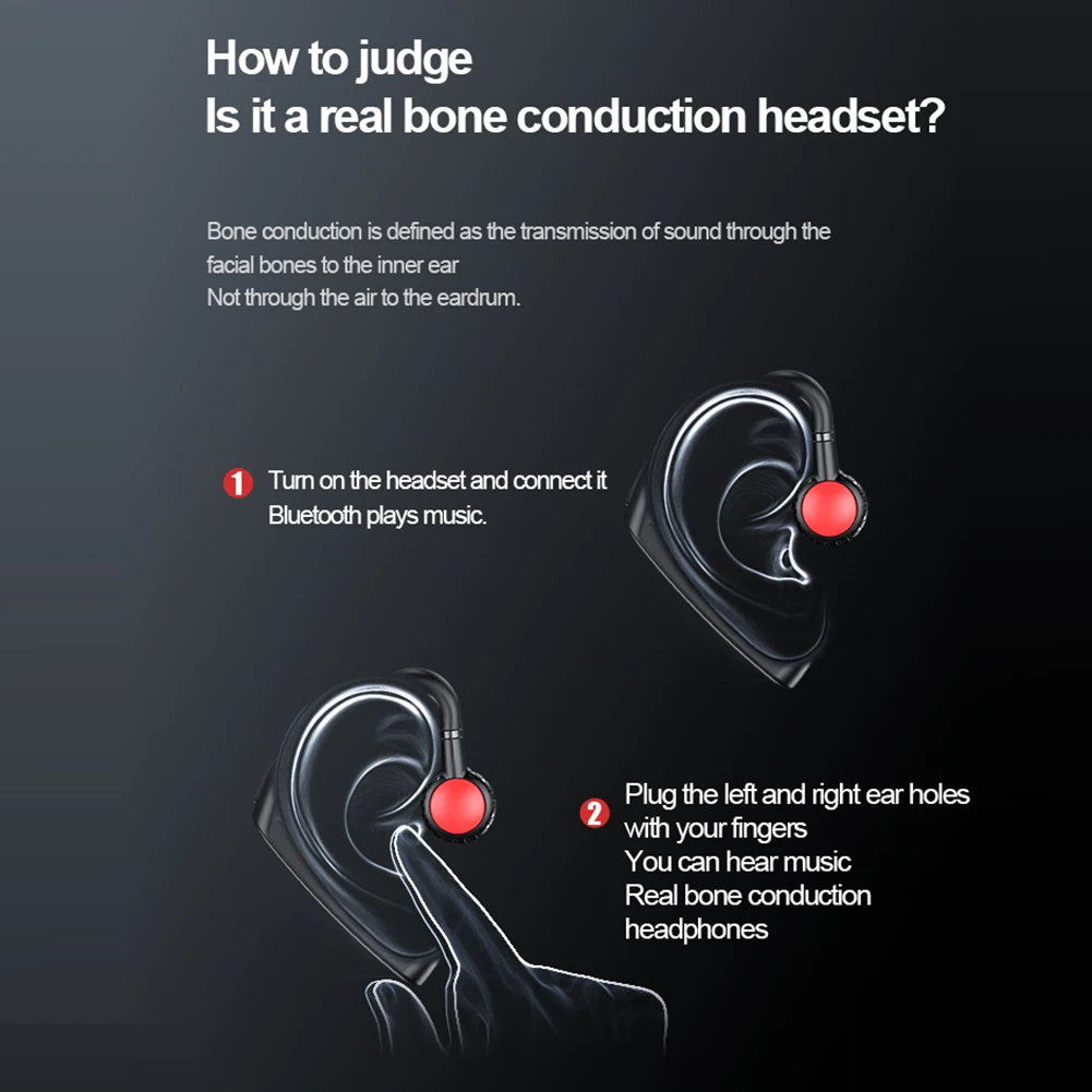 2. Наушники с костной проводимостью:Звуковые волны (вибрационные сигналы) передаются слуховому нерву через кости, не вставляя в отверстия для уха, который устраняет повреждение барабанной перепонки, вызванное длительным использованием наушников с воздушной проводимостью для прослушивания песен и защиты слуха.