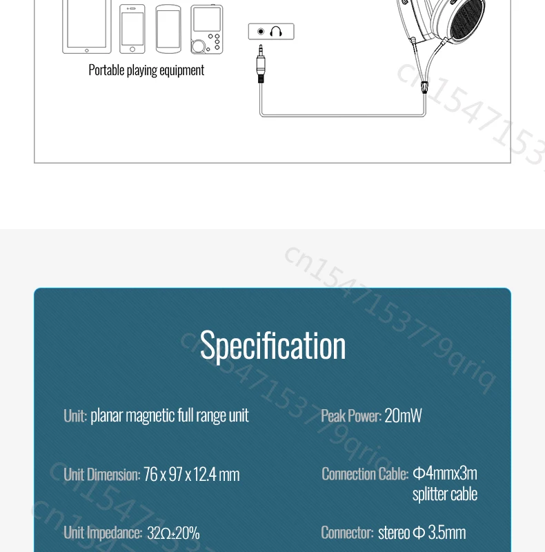 • Большой плоский магнитный блок драйвера, высокопроизводительный магнит NdFeBmagnet, высокая чувствительность, широкий частотный отклик и динамический