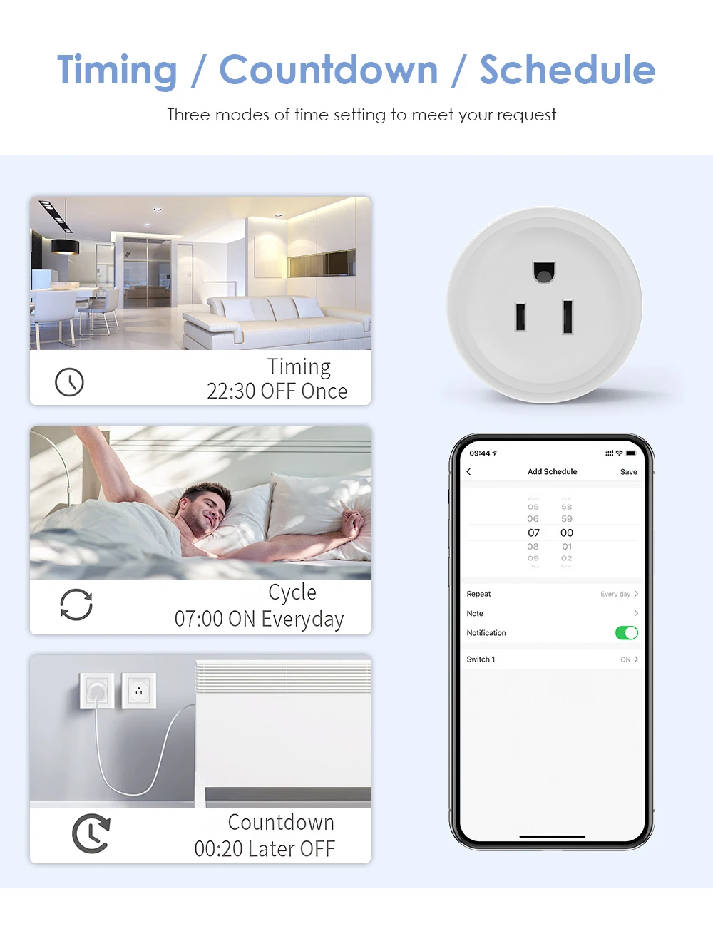 Вы можете спроектировать и установить определенное время для автоматического включения/выключения вашего домашнего устройства в гостиной, кухне, спальне или ванной комнате, что помогает сэкономить электричество.