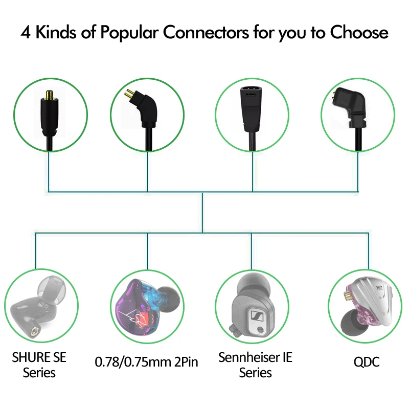 2PIN S QDC: KZ ZSX, ZSN PRO, AS16, AS12, ZSN, TRN VX, BA5, M10, ST1, V90S, CCA C12, CA16, A10, CA4, KBEAR KB06, QDC, BLON BL-03