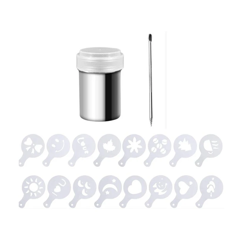 Набор для дизайна Кофе Латте: используется для равномерного посыпания кофе порошком Коко или порошком корицы для улучшения вкуса; С трафаретами 16 шт., 16 различными видами узоров, отвечают всем вашим потребностям и предпочтениям.