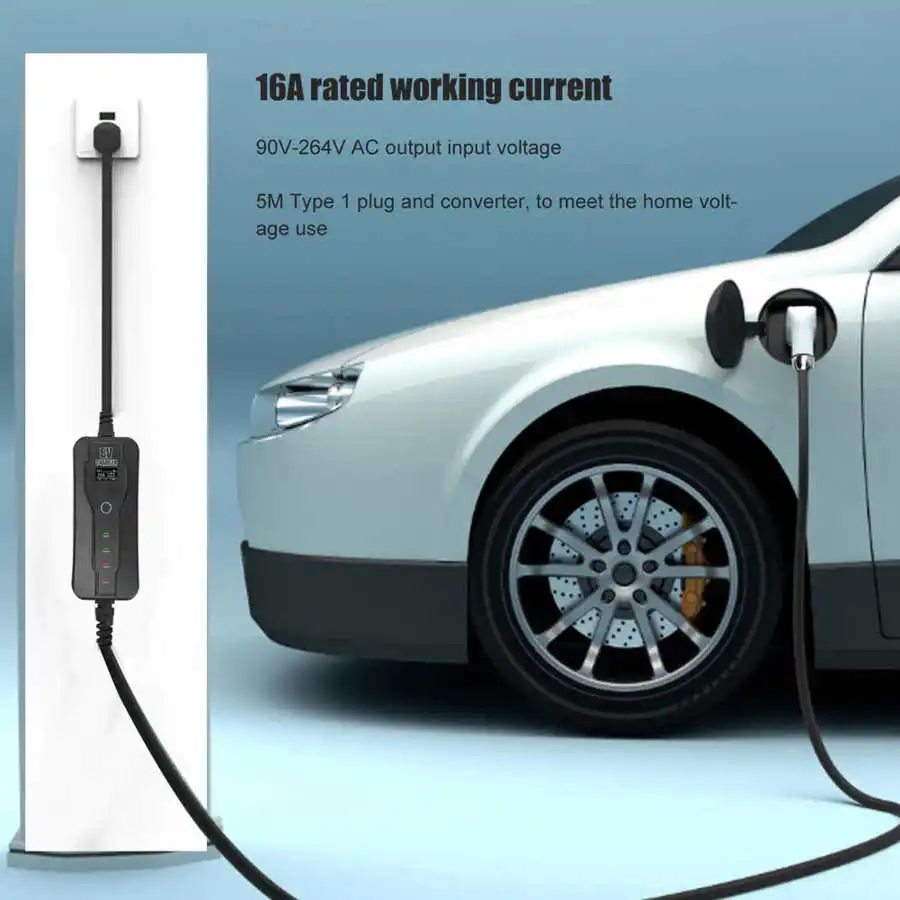 EV зарядное устройство 16A 5 м зарядный кабель для электромобиля тип 1 вилка CE TUV SAE J1772 стандарт IP65 Водонепроницаемый Универсальный