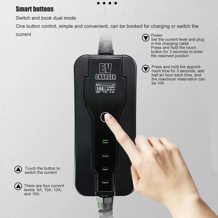 1. Идеальная конфигурация: Номинальный рабочий ток 16A, входное напряжение на выходе 90 В-264 В переменного тока, с вилкой и преобразователем типа 5 м, для удовлетворения домашнего напряжения.