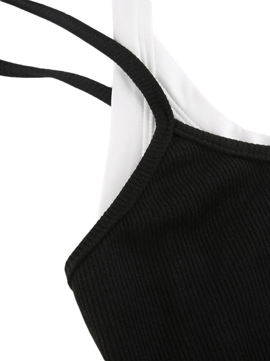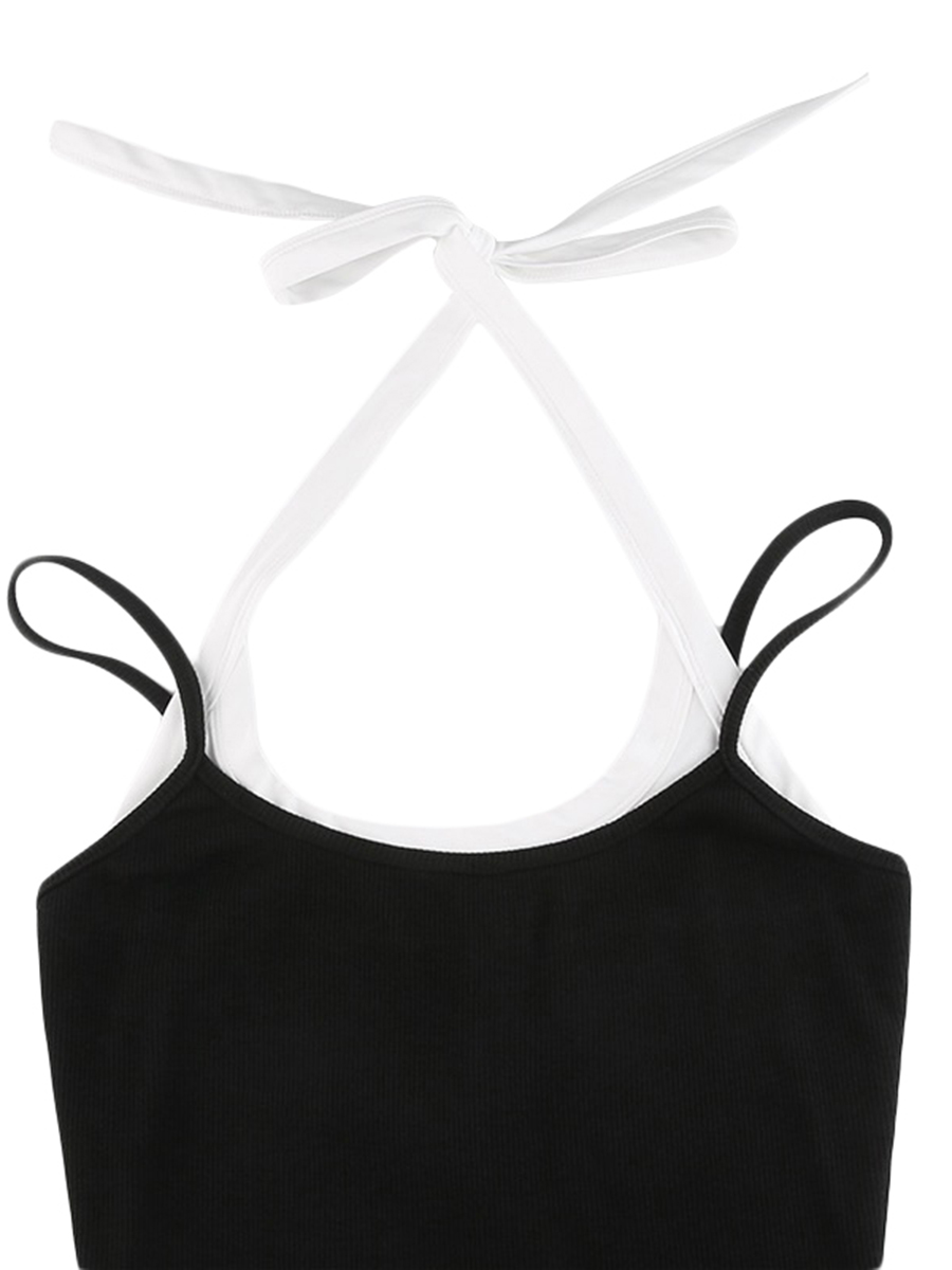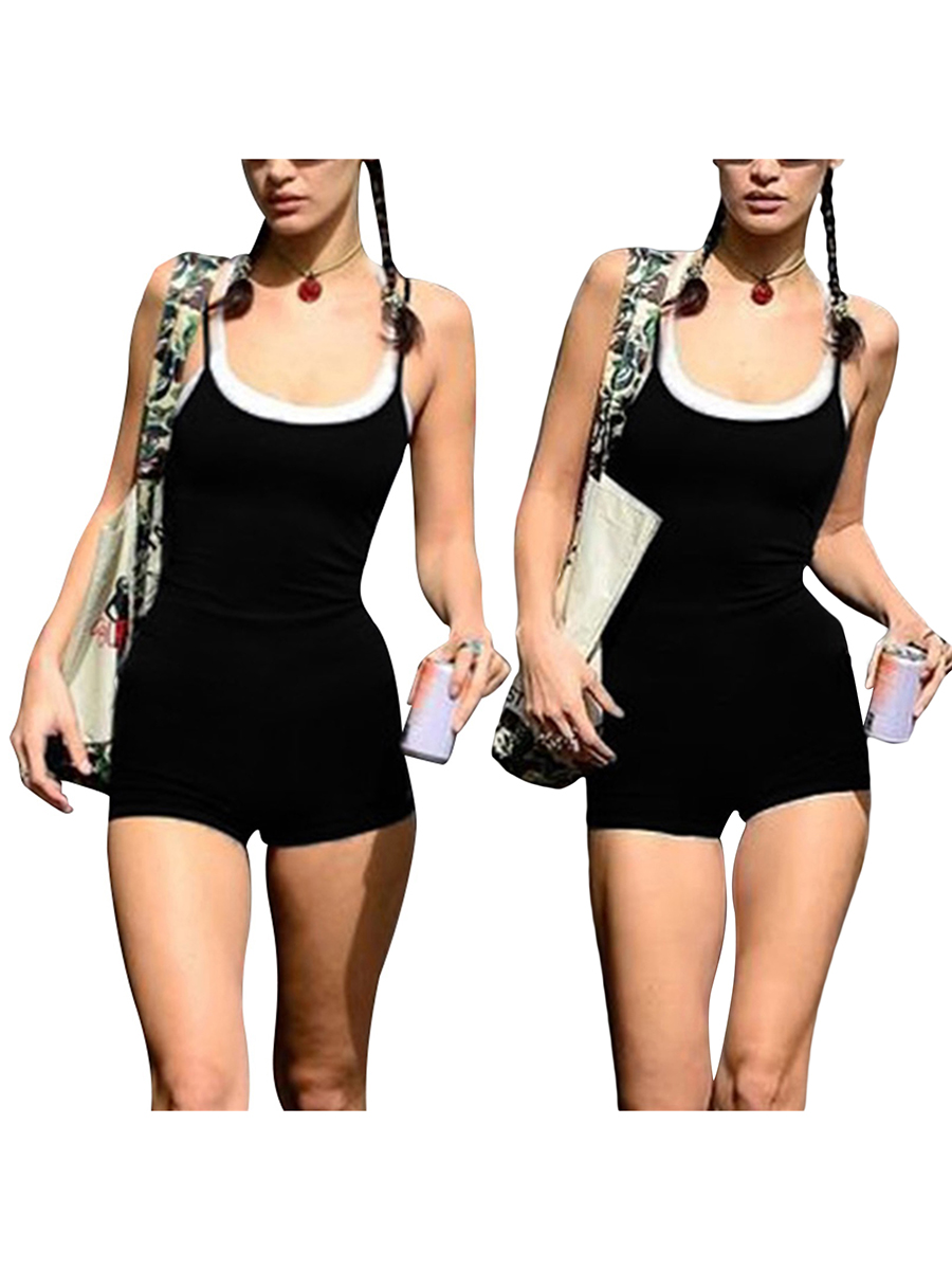 Комбинация контрастных цветов без рукавов с u-образным вырезом; Летний повседневный комбинезон из двух предметов с имитацией шорт, чтобы сделать вас более очаровательным.