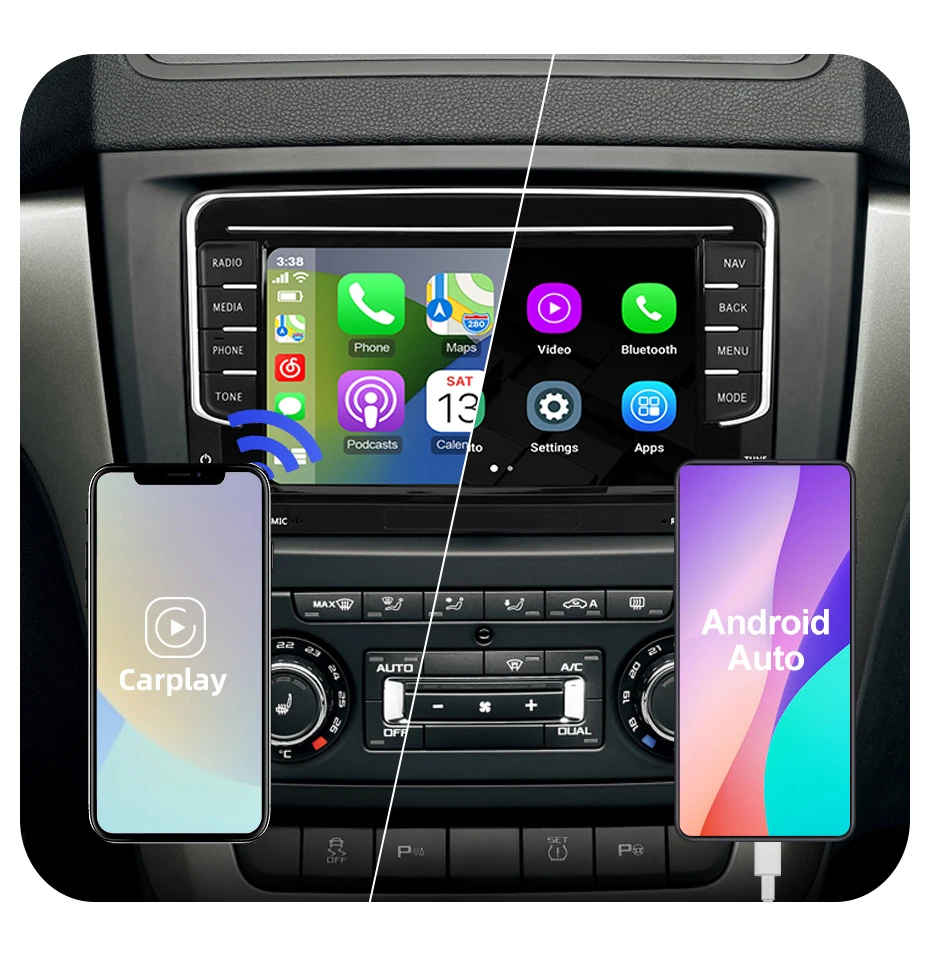 Встроенный беспроводной Carplay и проводной Android Auto.