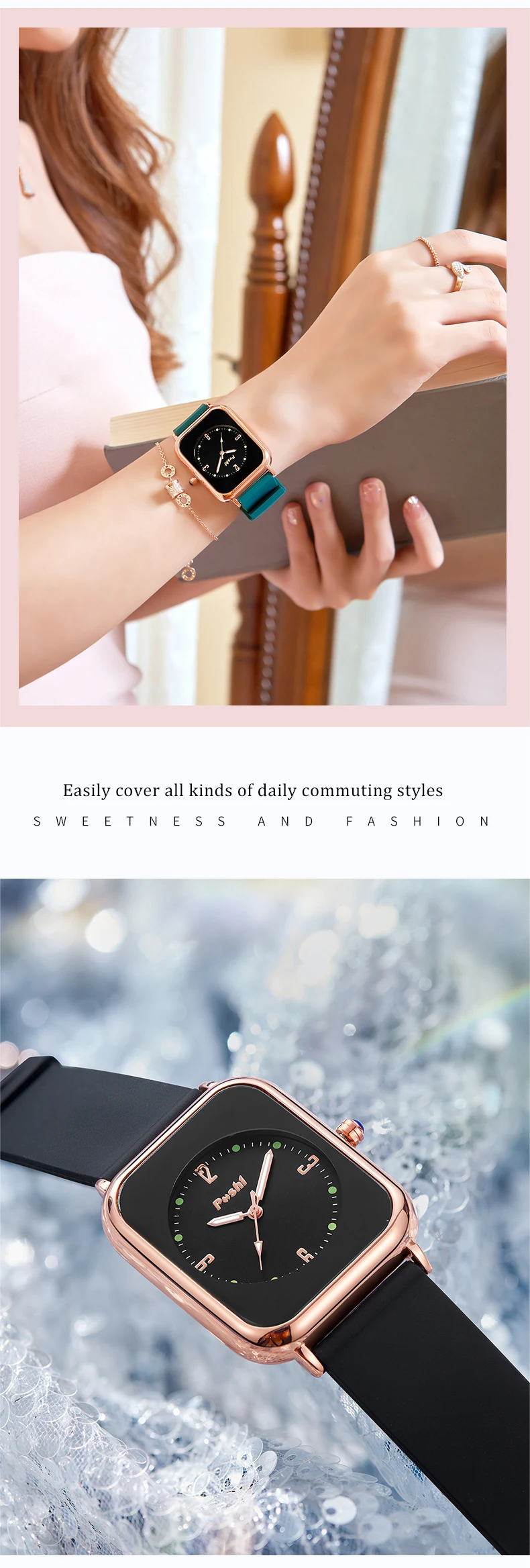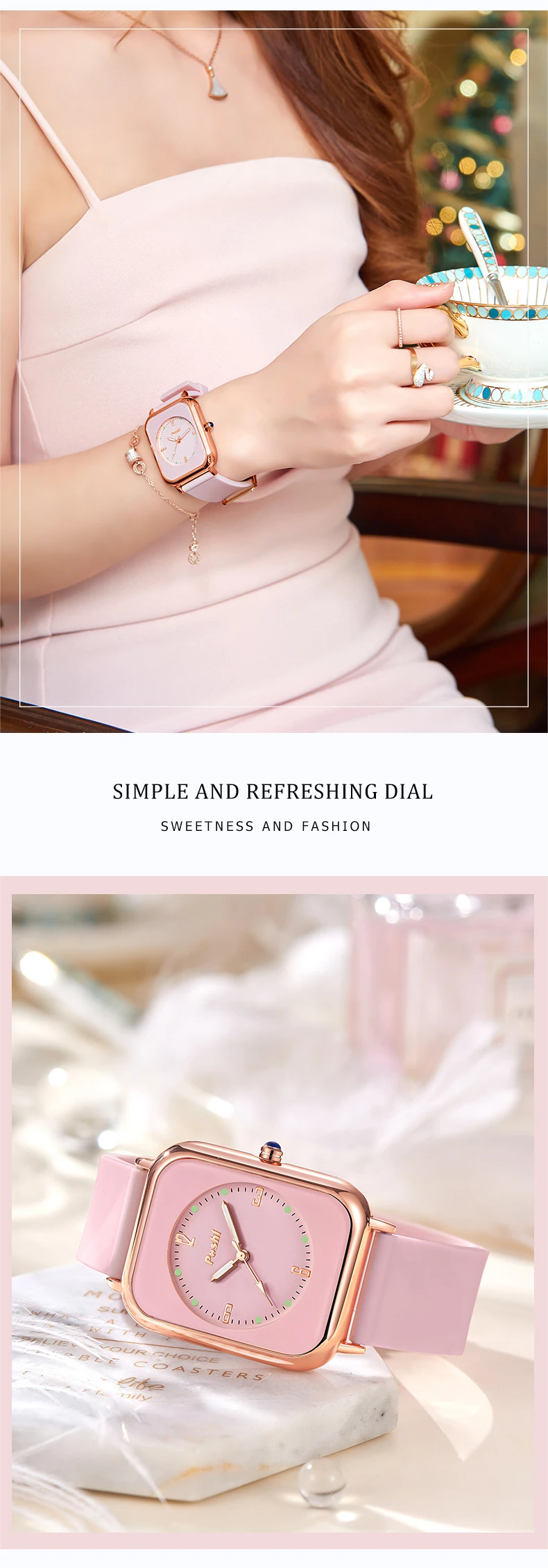 POSHI новые женские часы модные черные квадратные наручные часы простые женские Лидирующий бренд роскошные кожаные платья повседневные часы Reloj Mujer