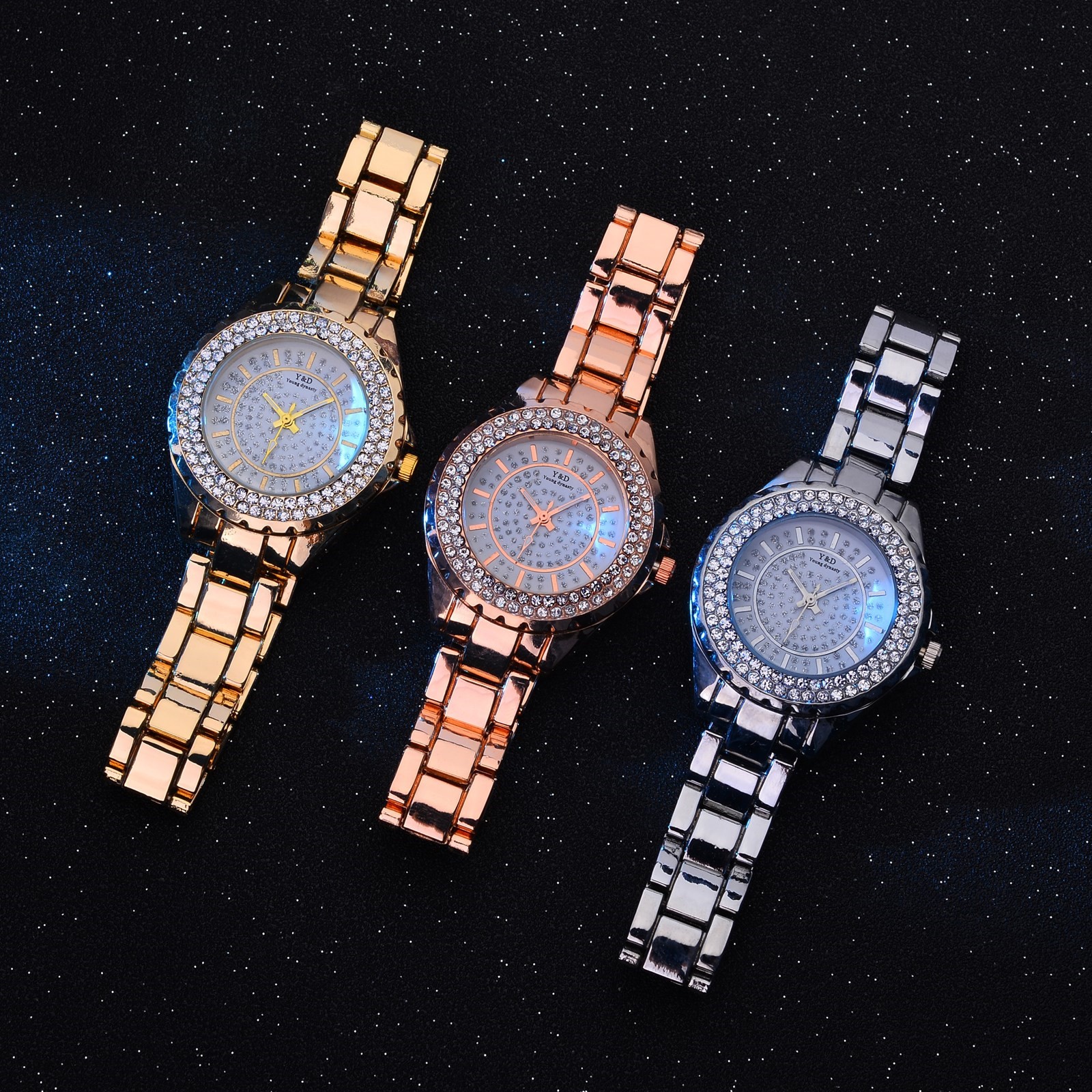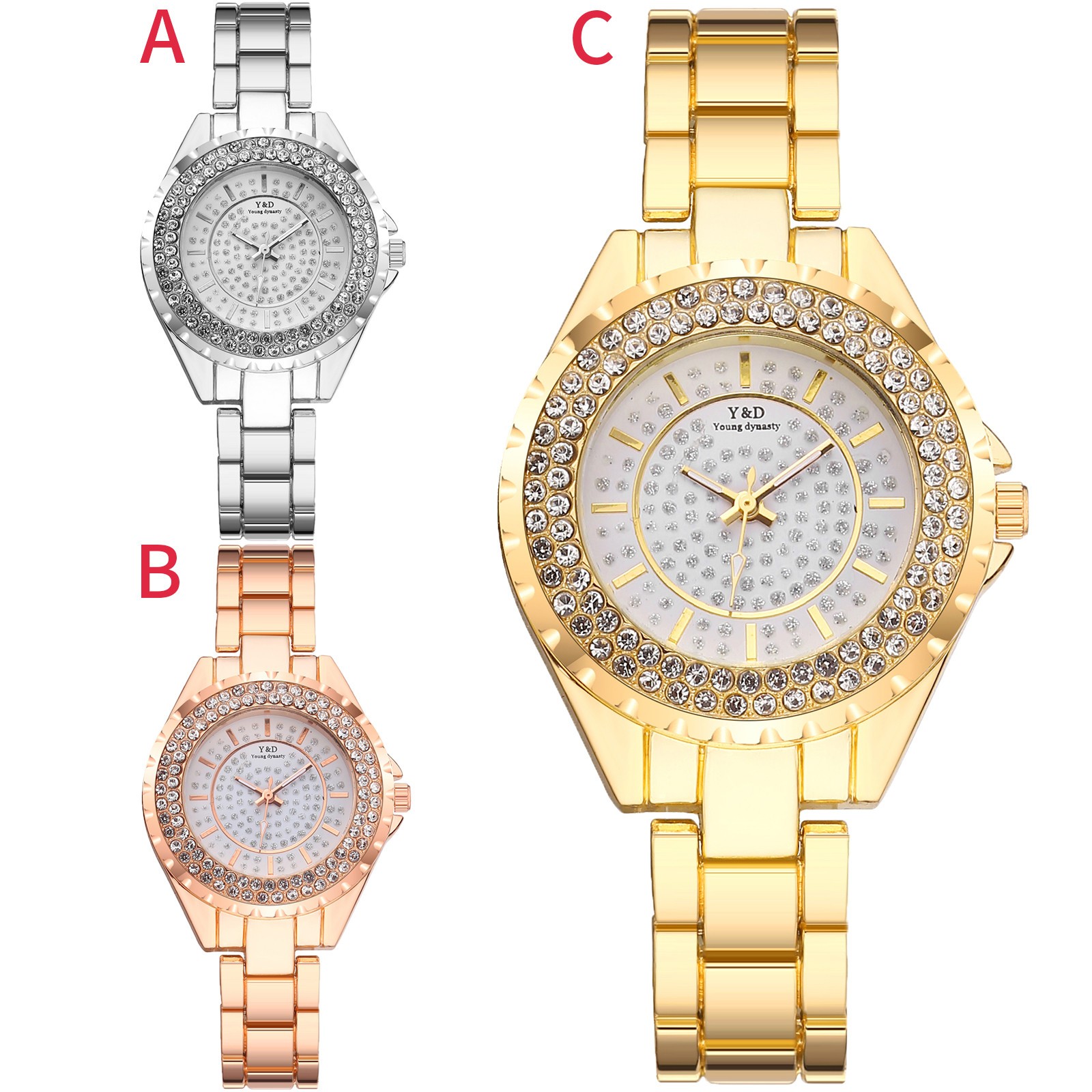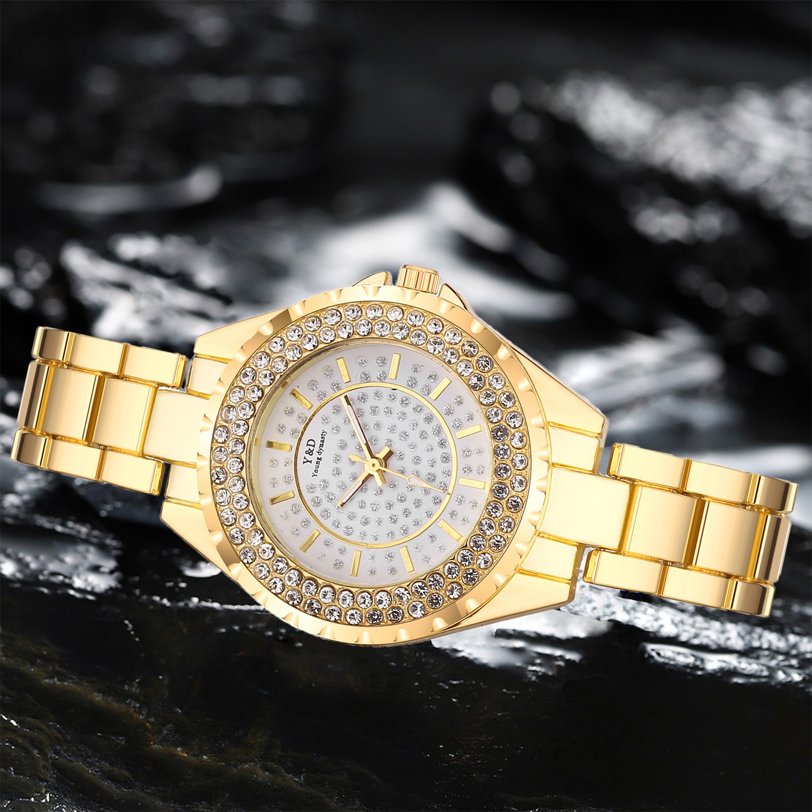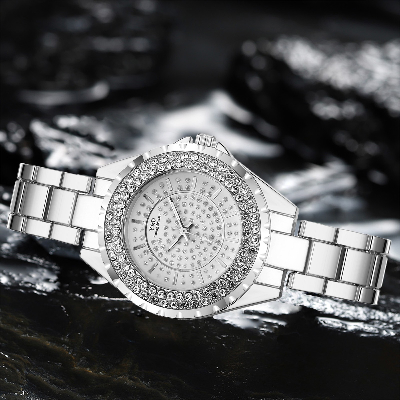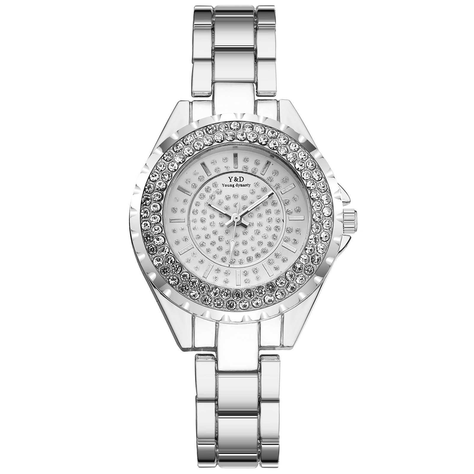 Для женщин Повседневное кварцевые Нержавеющая сталь группа Для женщин бриллиантами Стразы Часы