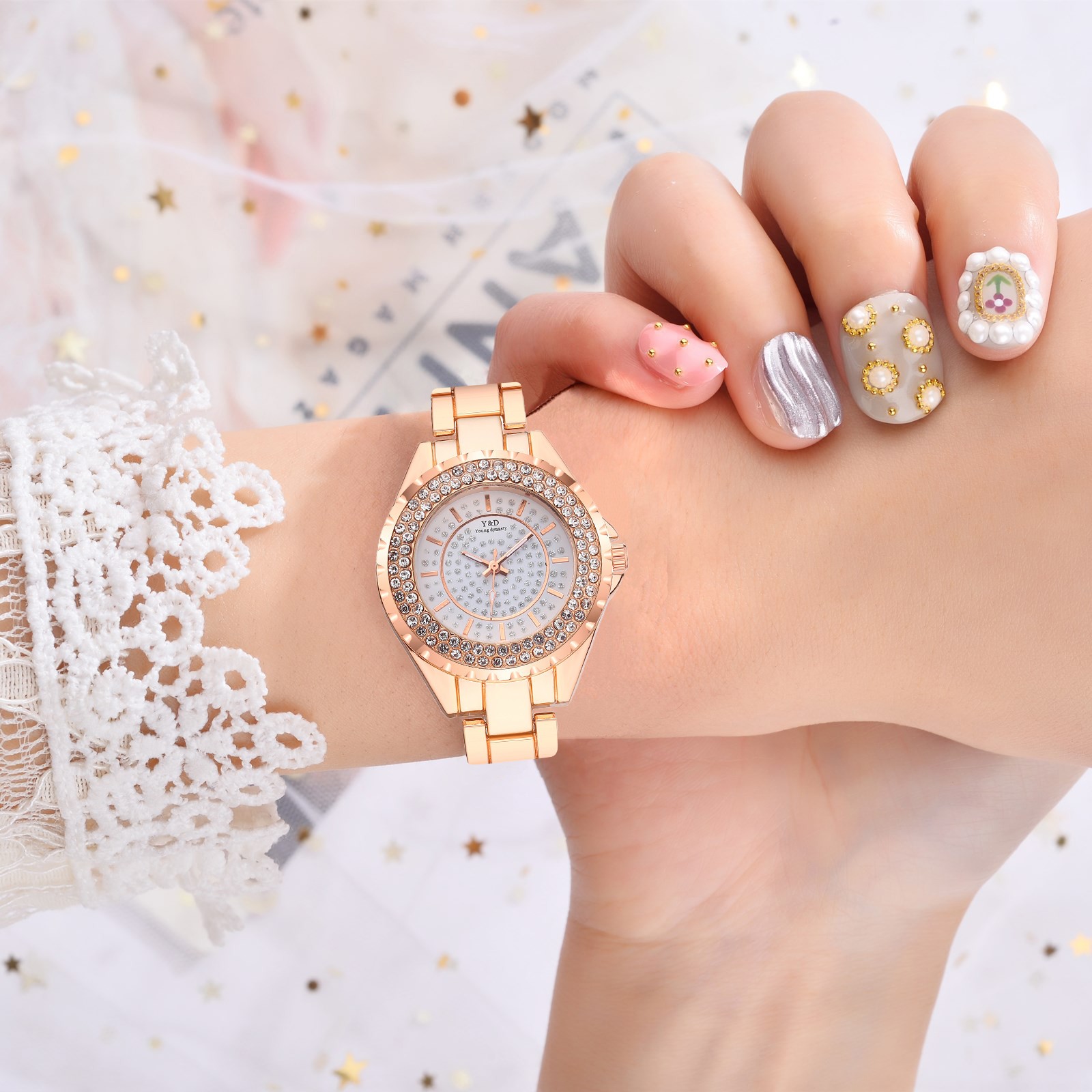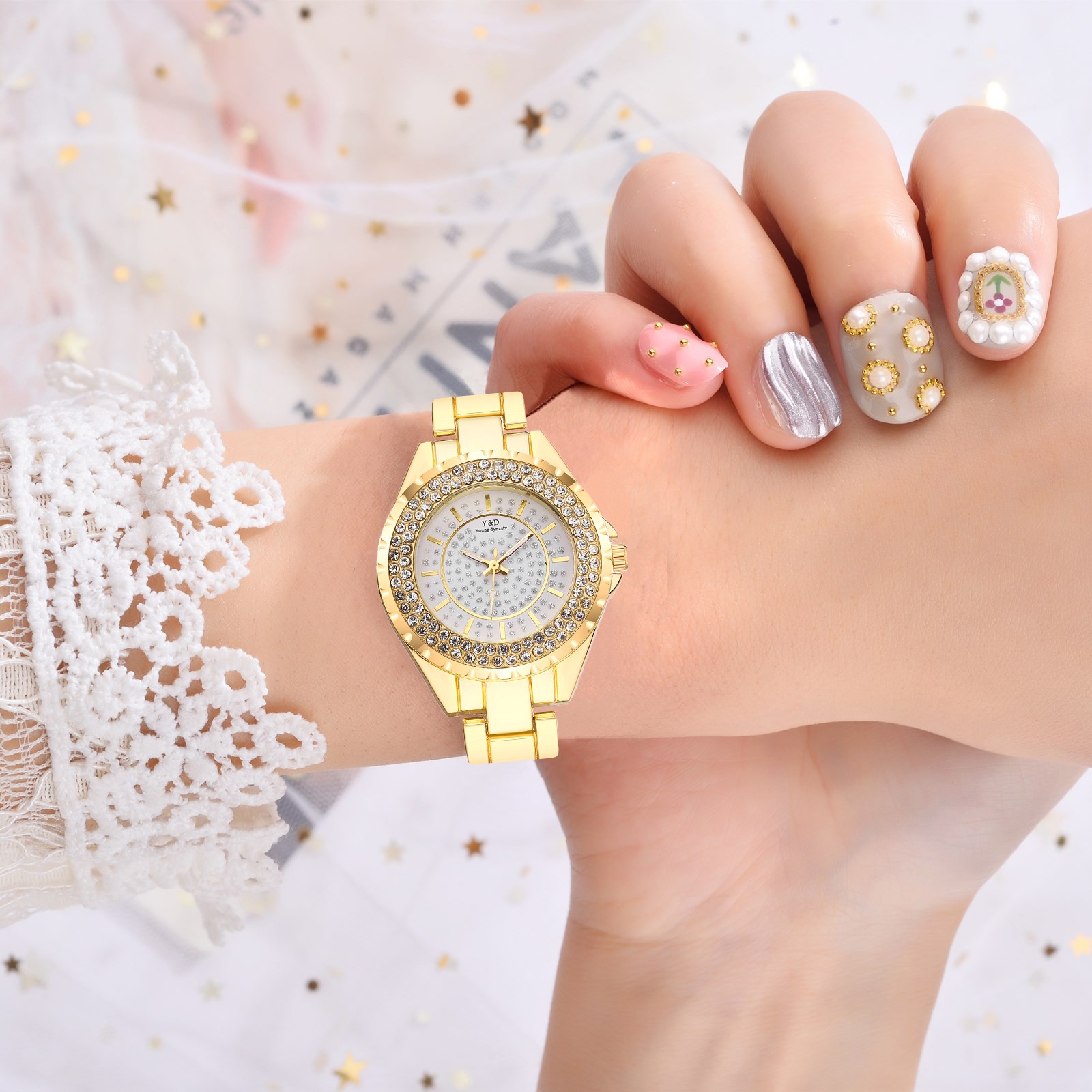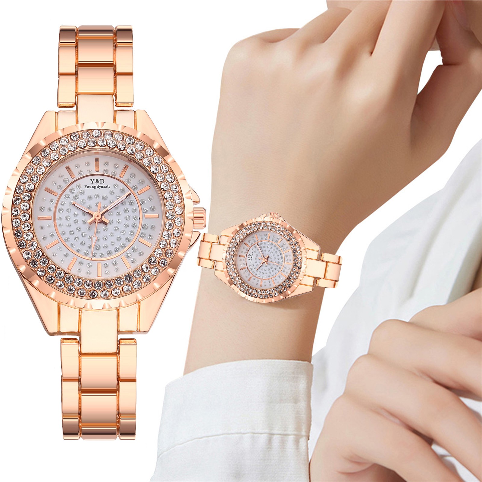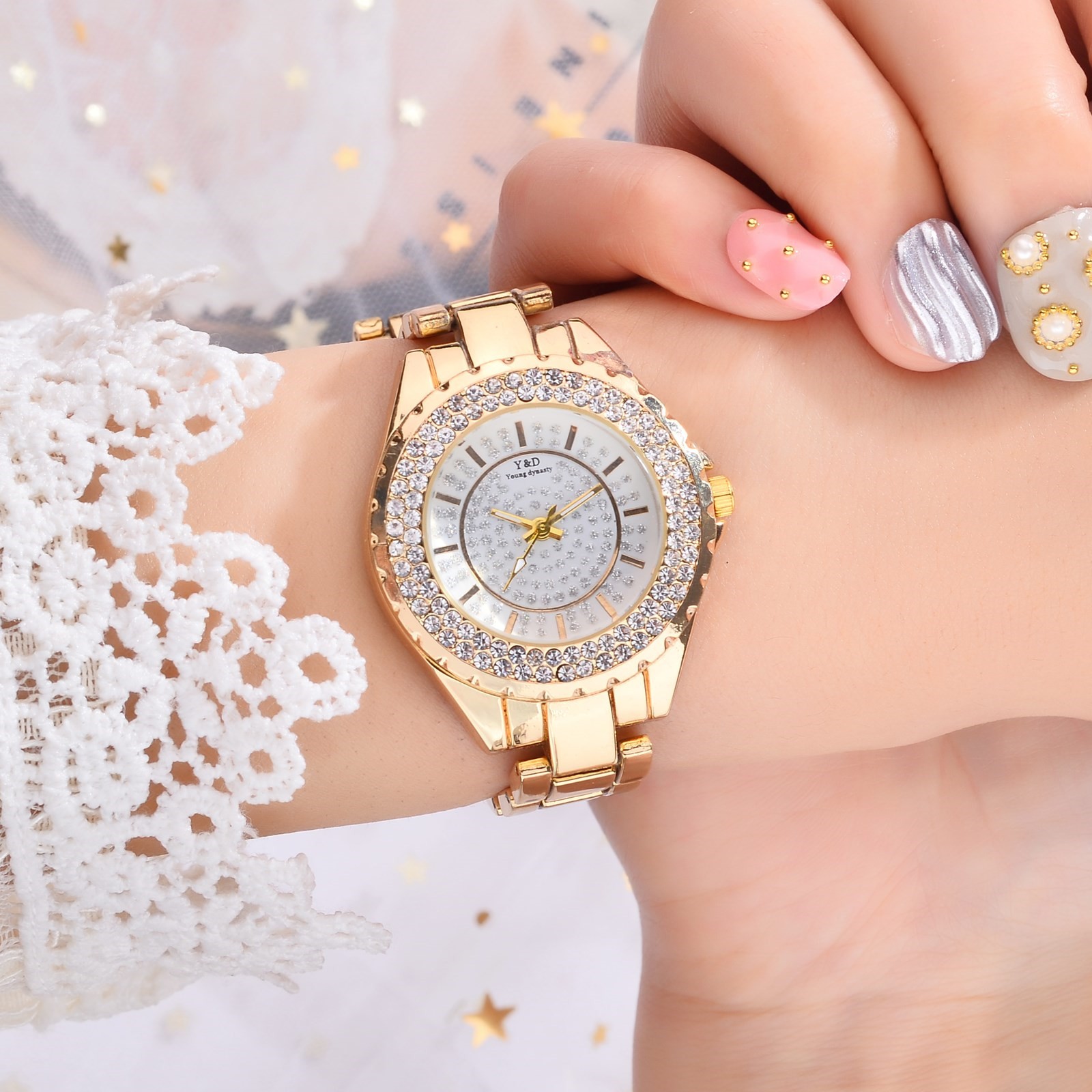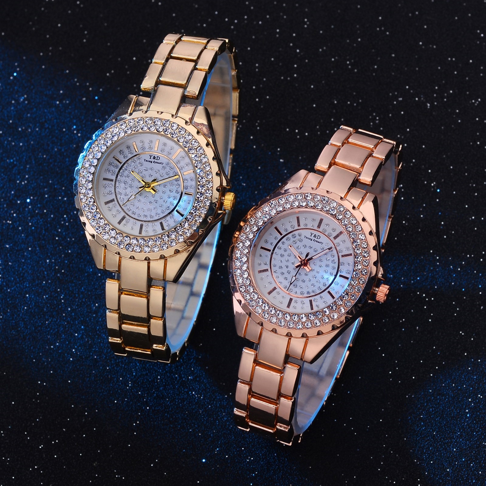 Для женщин Повседневное кварцевые Нержавеющая сталь группа Для женщин бриллиантами Стразы Часы