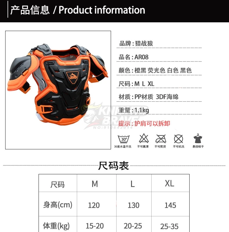 Protective Armor Is Made Of High-density Wear-resistant Nylon. Moveable Liner Allows For Easy Cleaning, Multiple Large Vents Of Plastic Shells And Foam Are For Maximum Ventilation, All Of The Advantages Keep You Secure During Riding.
