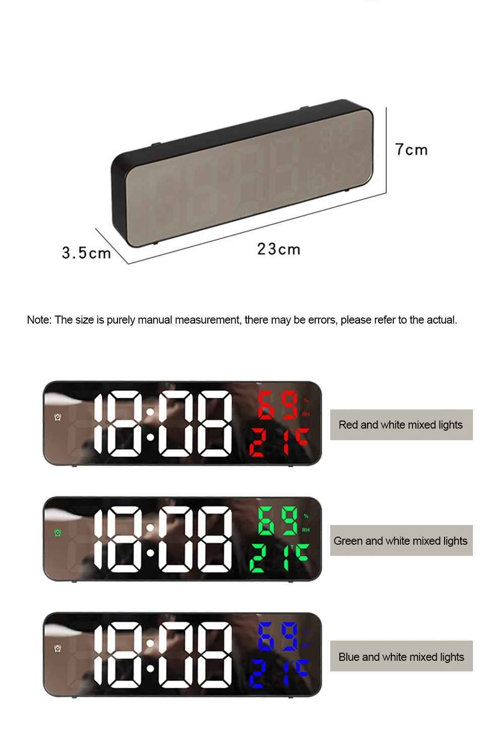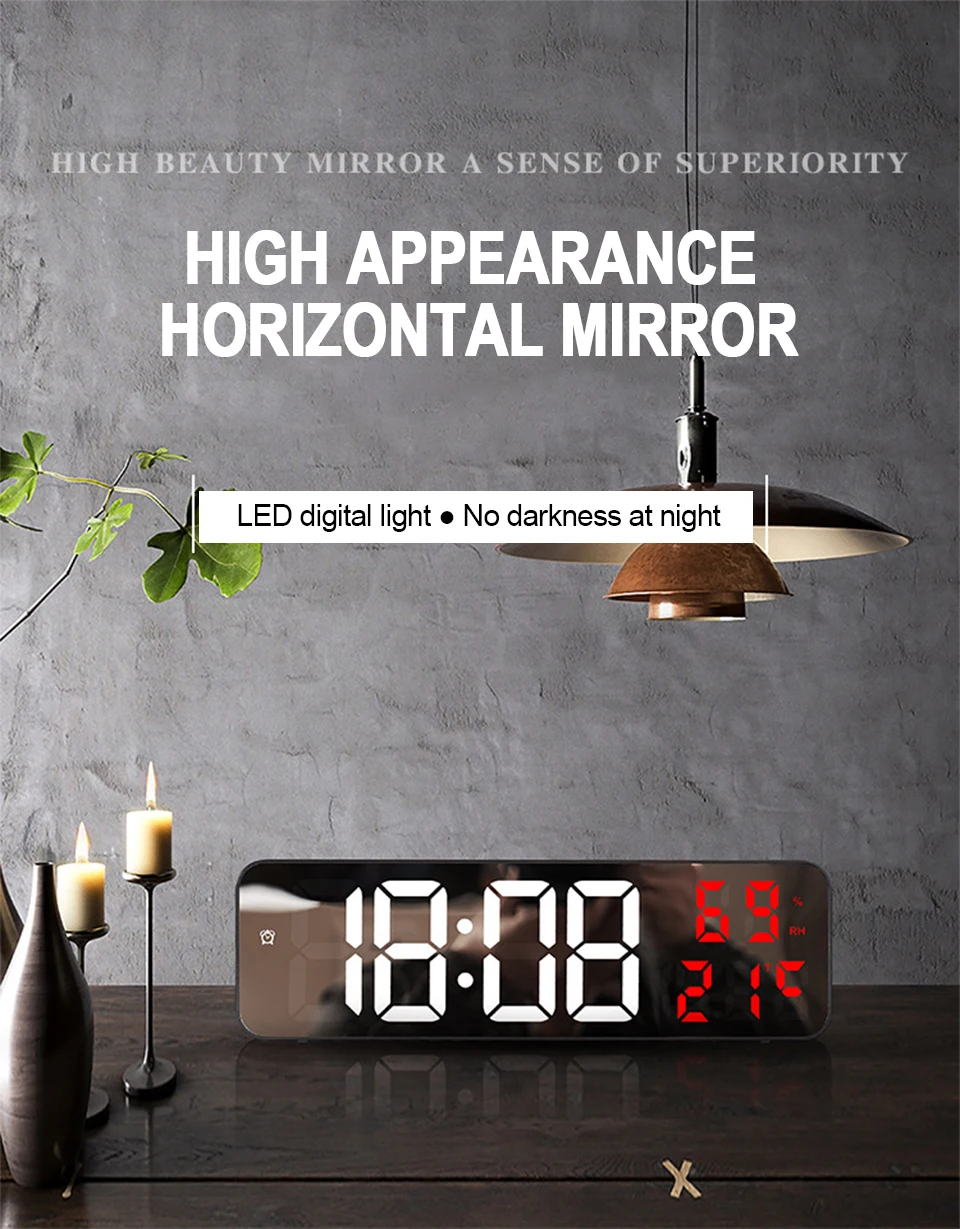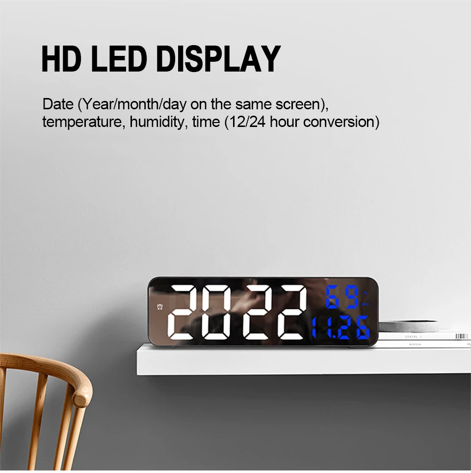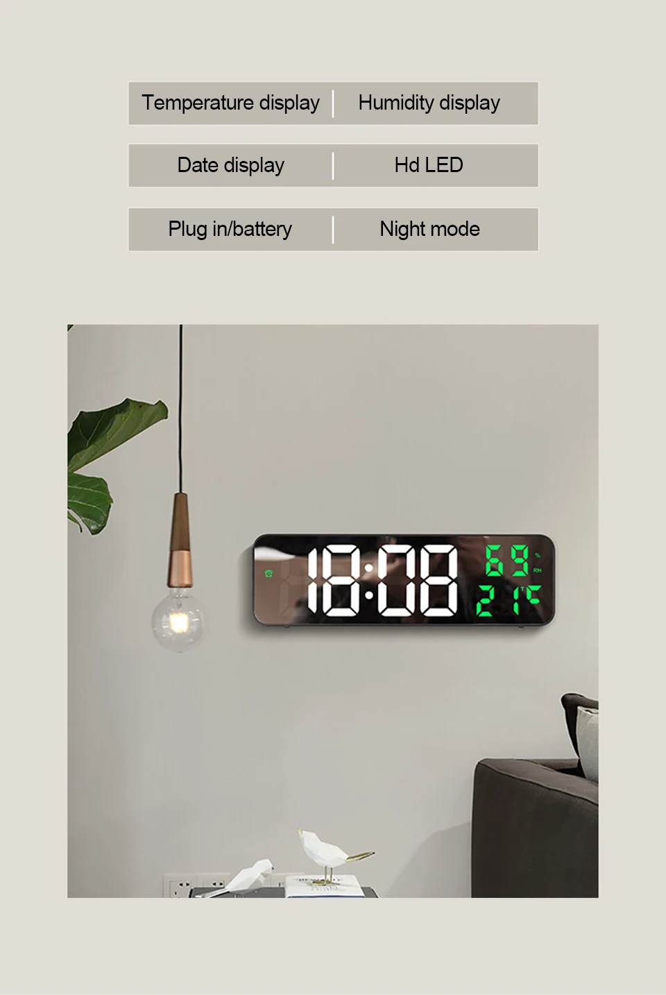 Светодиодный, большие цифровые настенные часы, отображение температуры, даты, регулируемая яркость, настольный настенный зеркальный будильник для домашнего декора